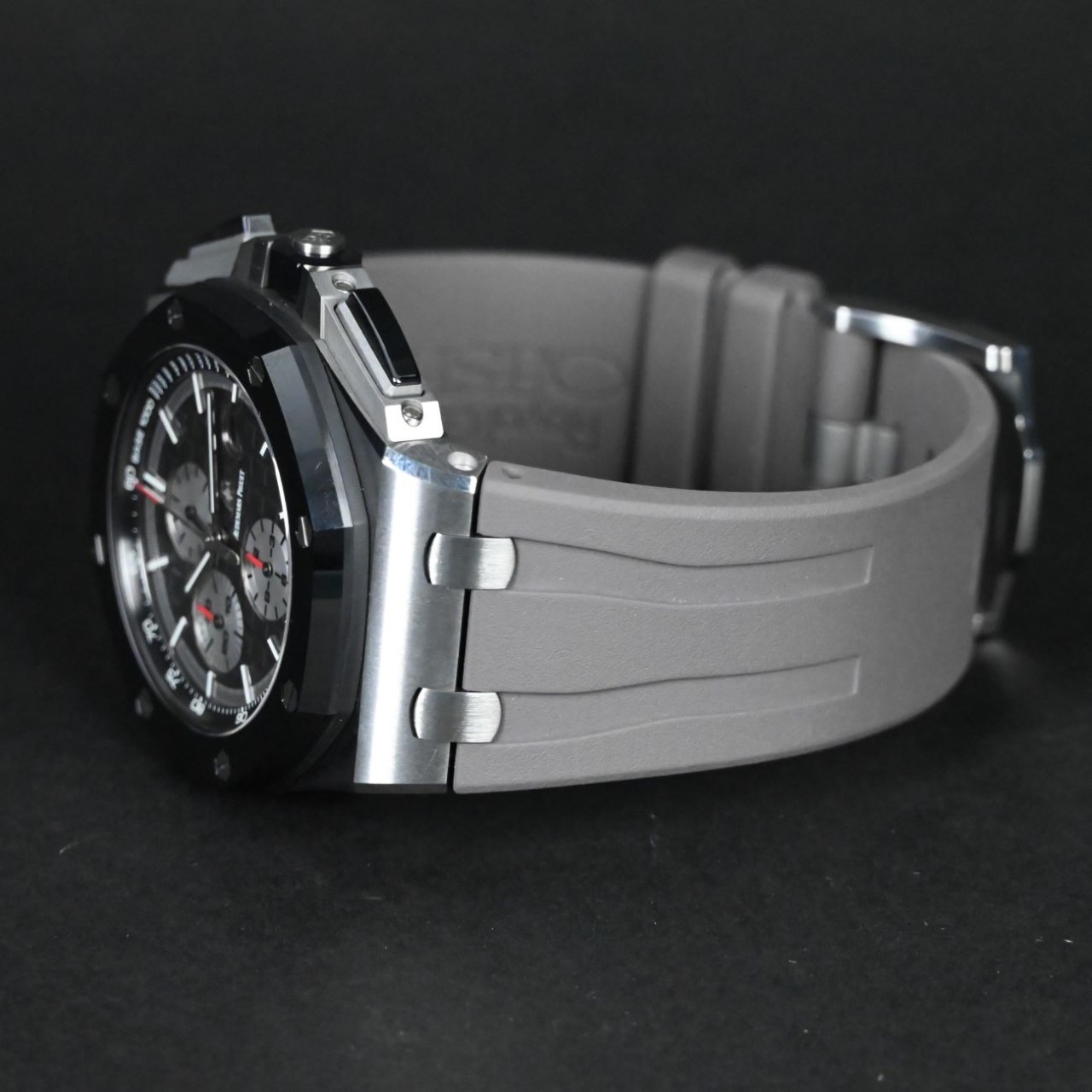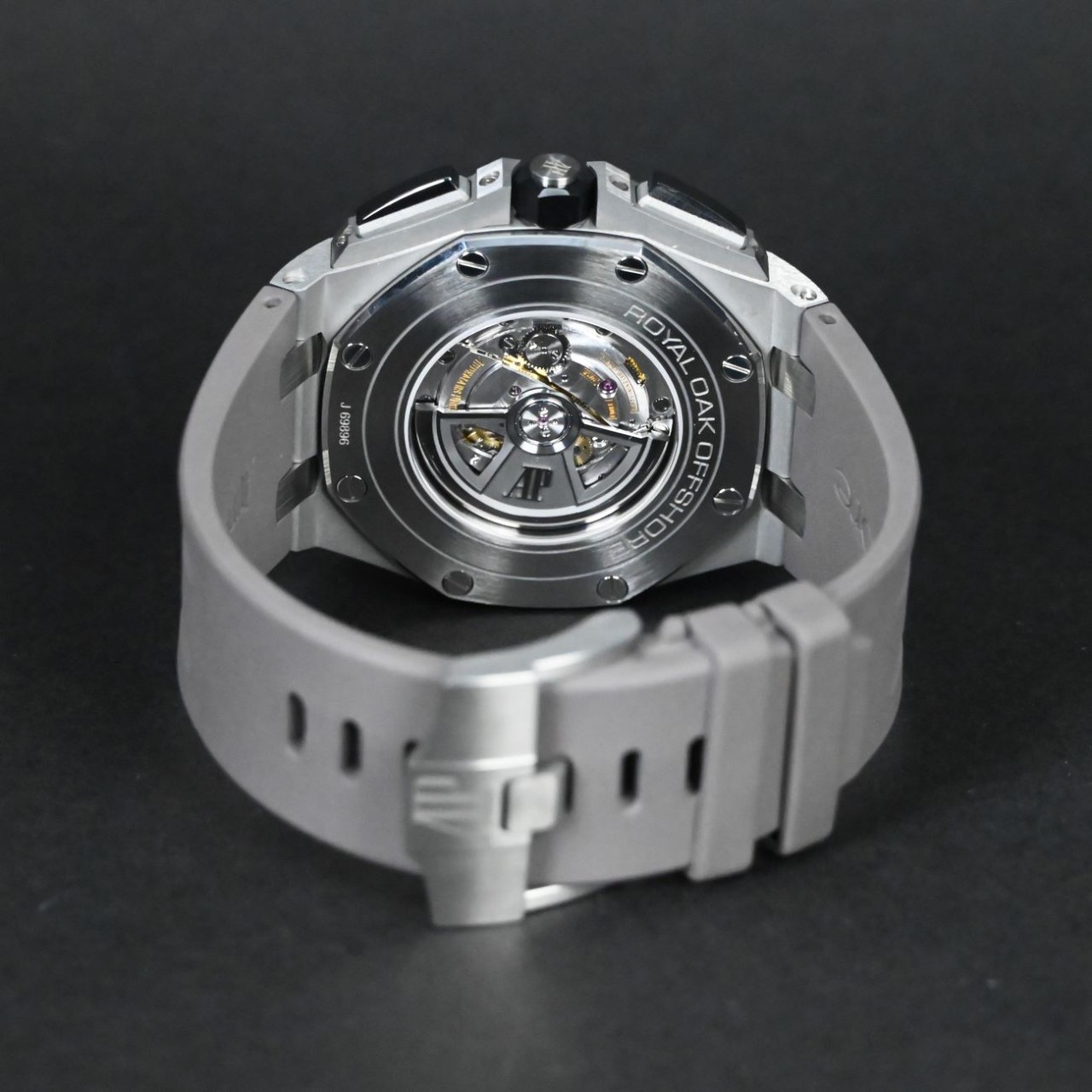 Owning the Royal Oak Offshore 26400IO.OO.A004CA.01 is more than possessing a timepiece; it's embracing a legacy of exclusivity and bold sophistication. The grey rubber strap and titanium pin buckle offer comfort and versatility, making it suitable for sporty endeavours and elegant occasions. As a cherished piece among watch enthusiasts and collectors, this model embodies the spirit of the Offshore collection - dynamic, resilient, and unmistakably prestigious. Whether displayed proudly on a wrist or admired from afar, the Royal Oak Offshore 26400IO.OO.A004CA.01 narrates a story of unparalleled craftsmanship and a relentless pursuit of perfection, making it a coveted symbol of luxury and style.