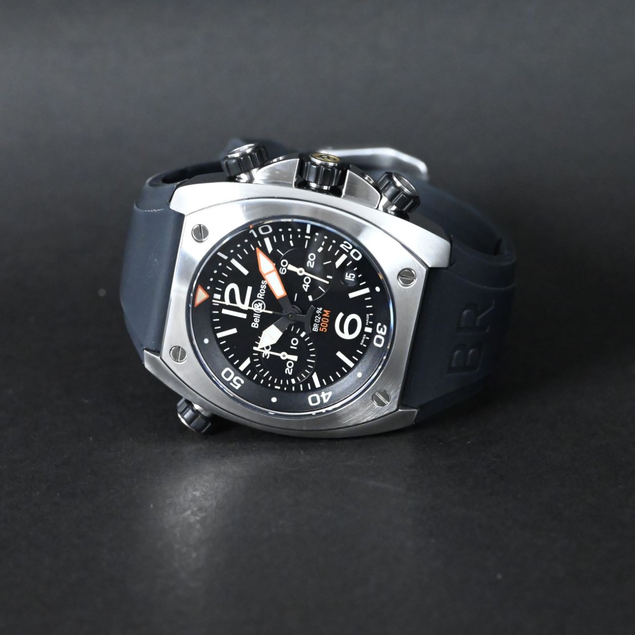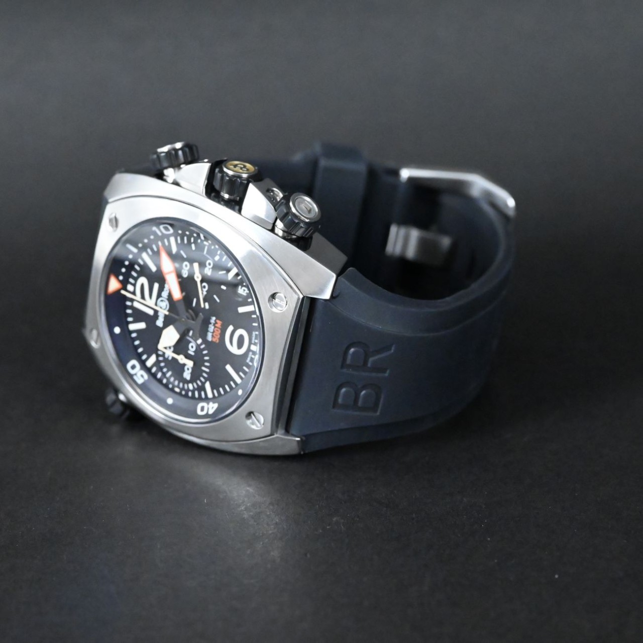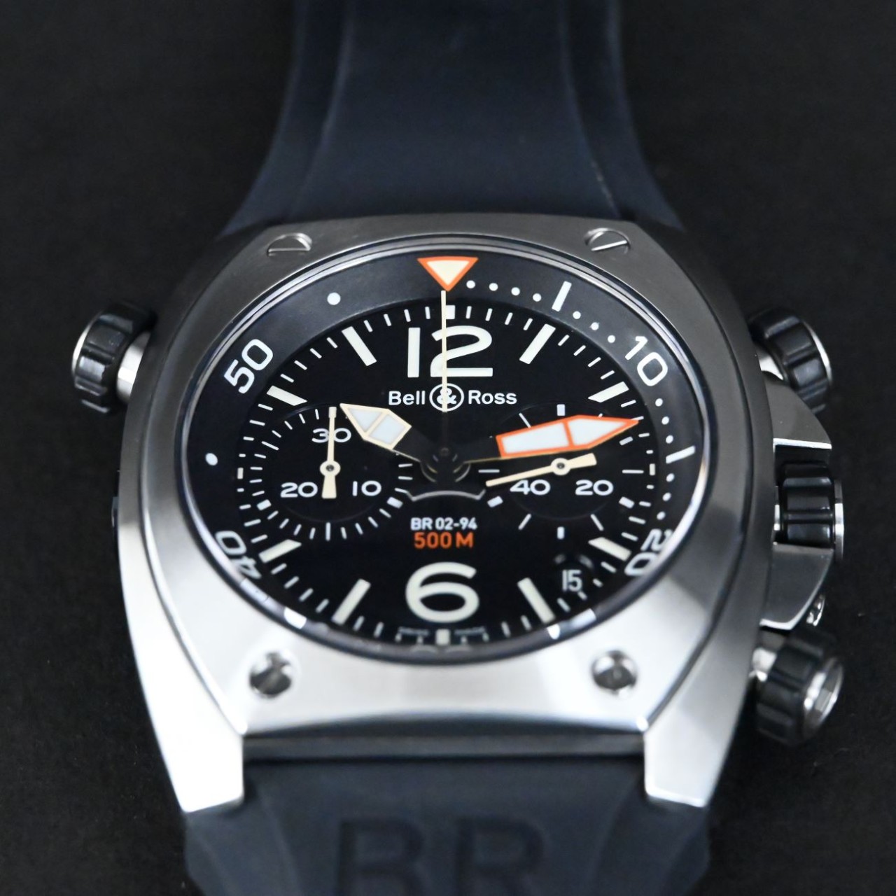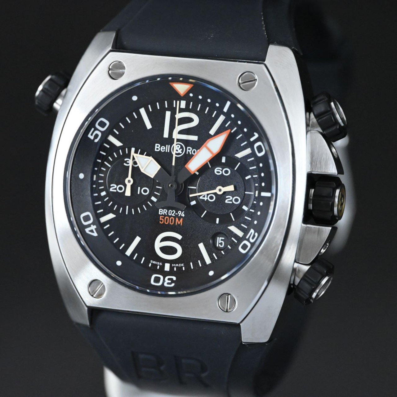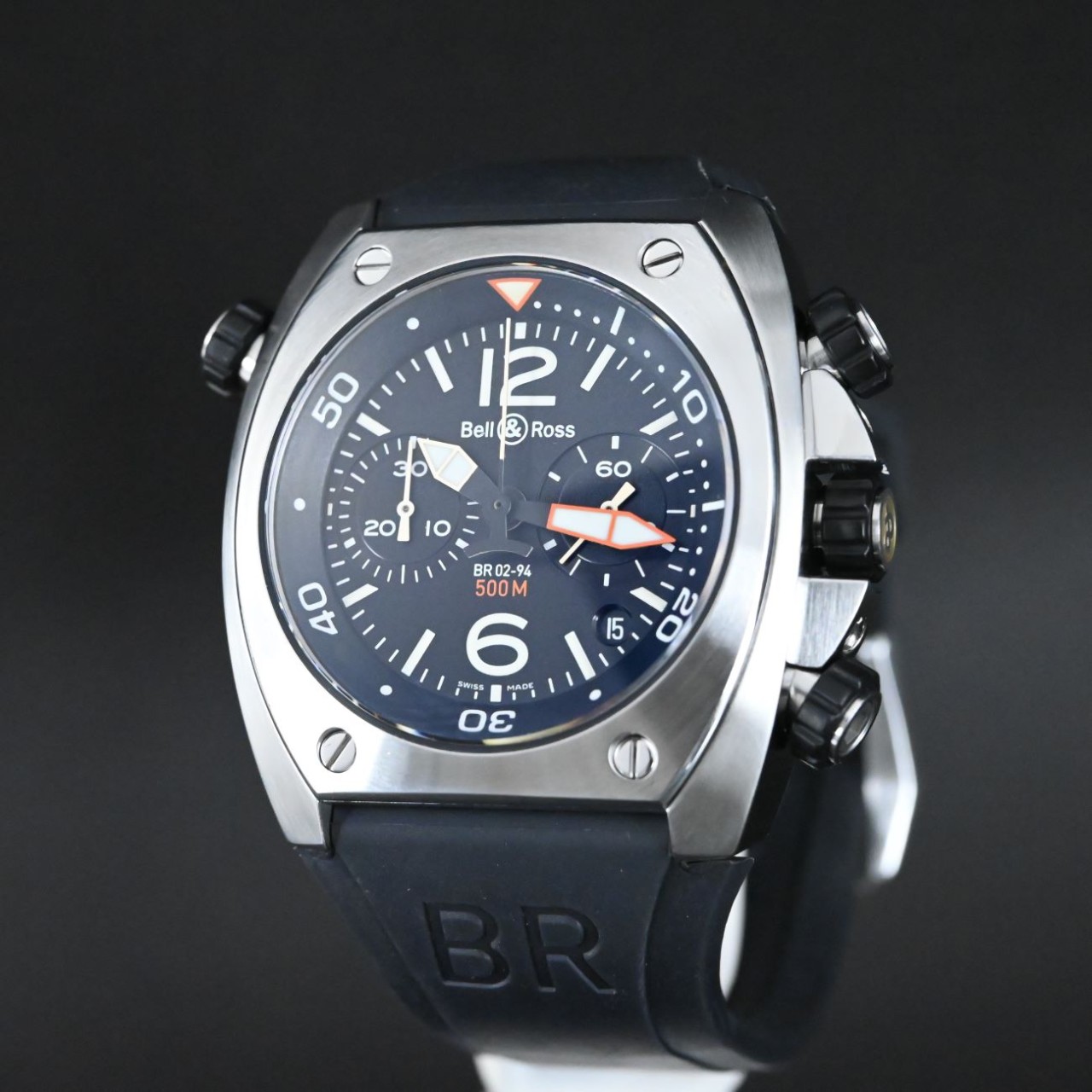 The BR 02 collection builds on Bell & Ross’s focus on professional instruments inspired by military and diving needs. The BR 02-94 Marine Chronograph was designed for underwater use, with strong water resistance and clear readability. It stands out for its unique case shape and tool-watch purpose, making it a key model in the brand’s dive watch lineup.