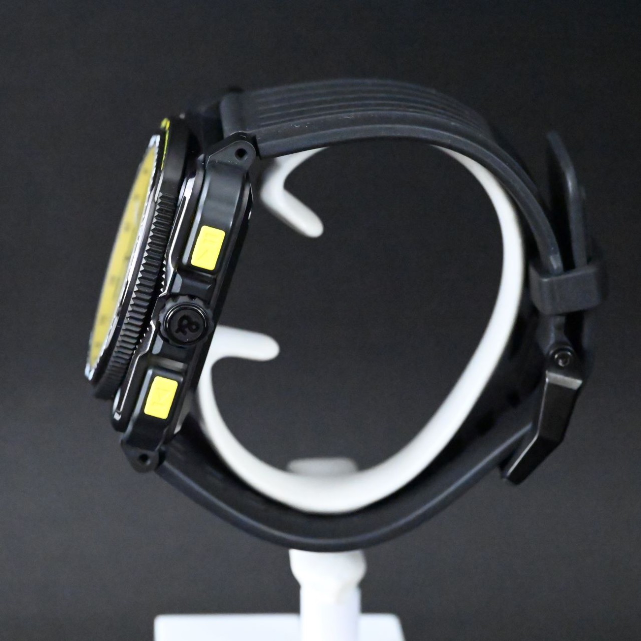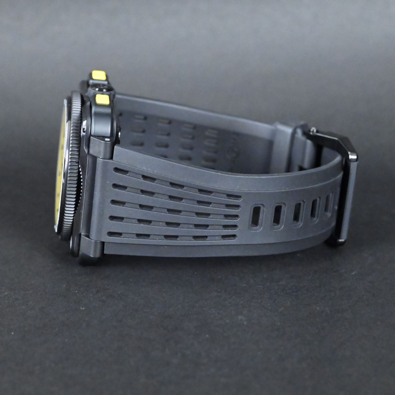 | Bracelet / Strap | Perforated black Rubber Strap Steel with Black Rubber Overlay Buckle |