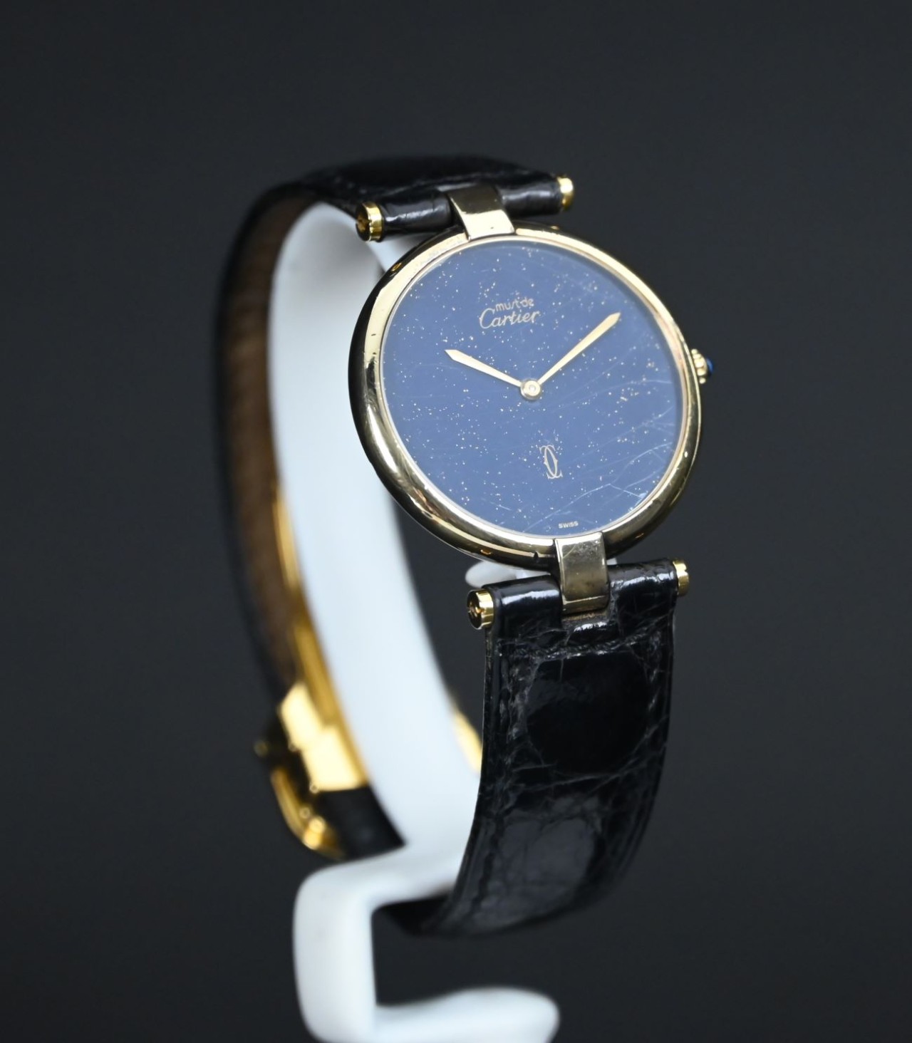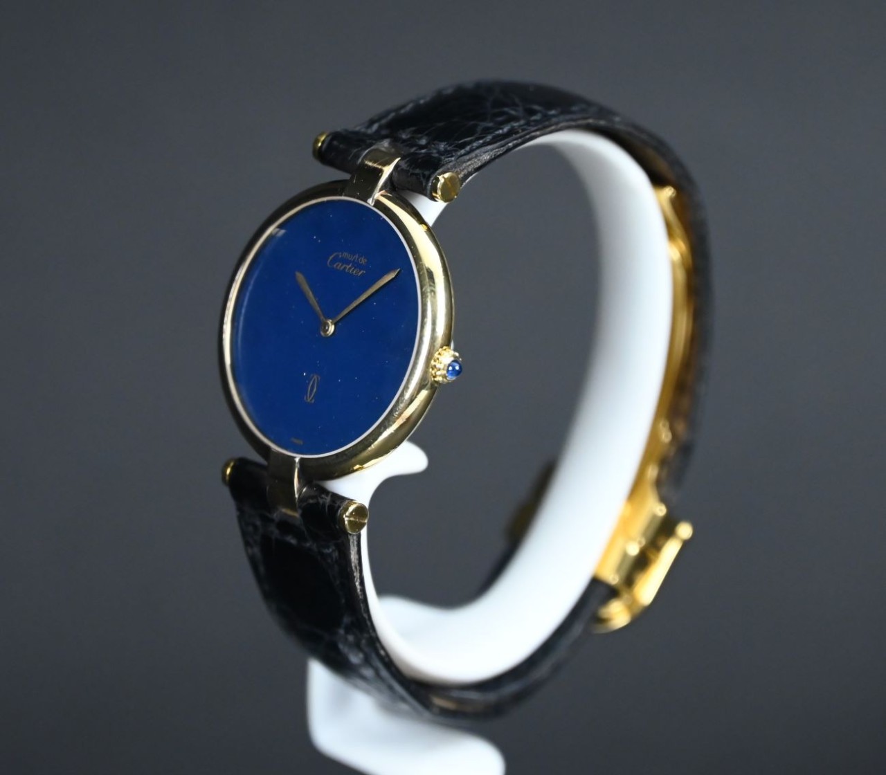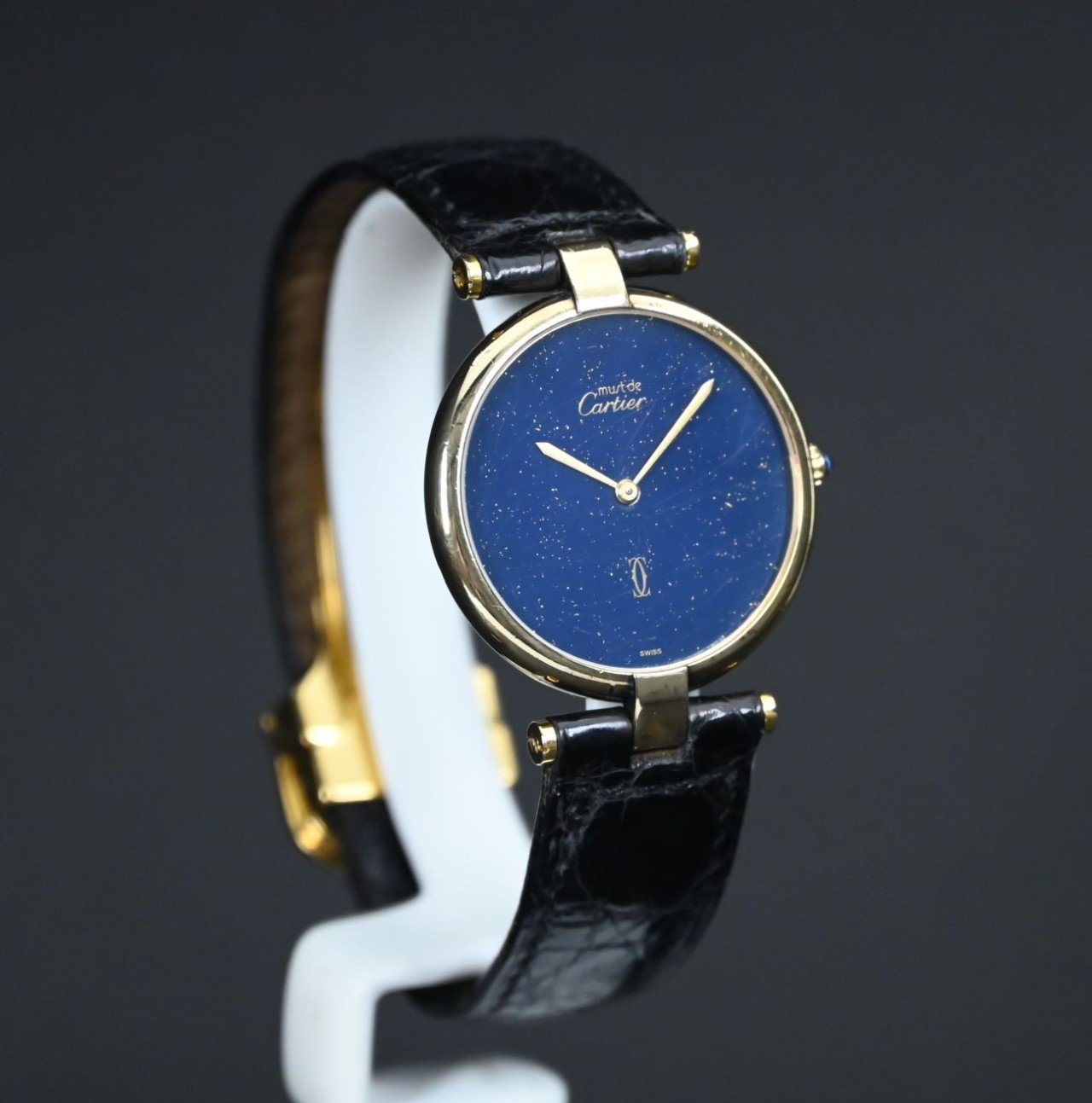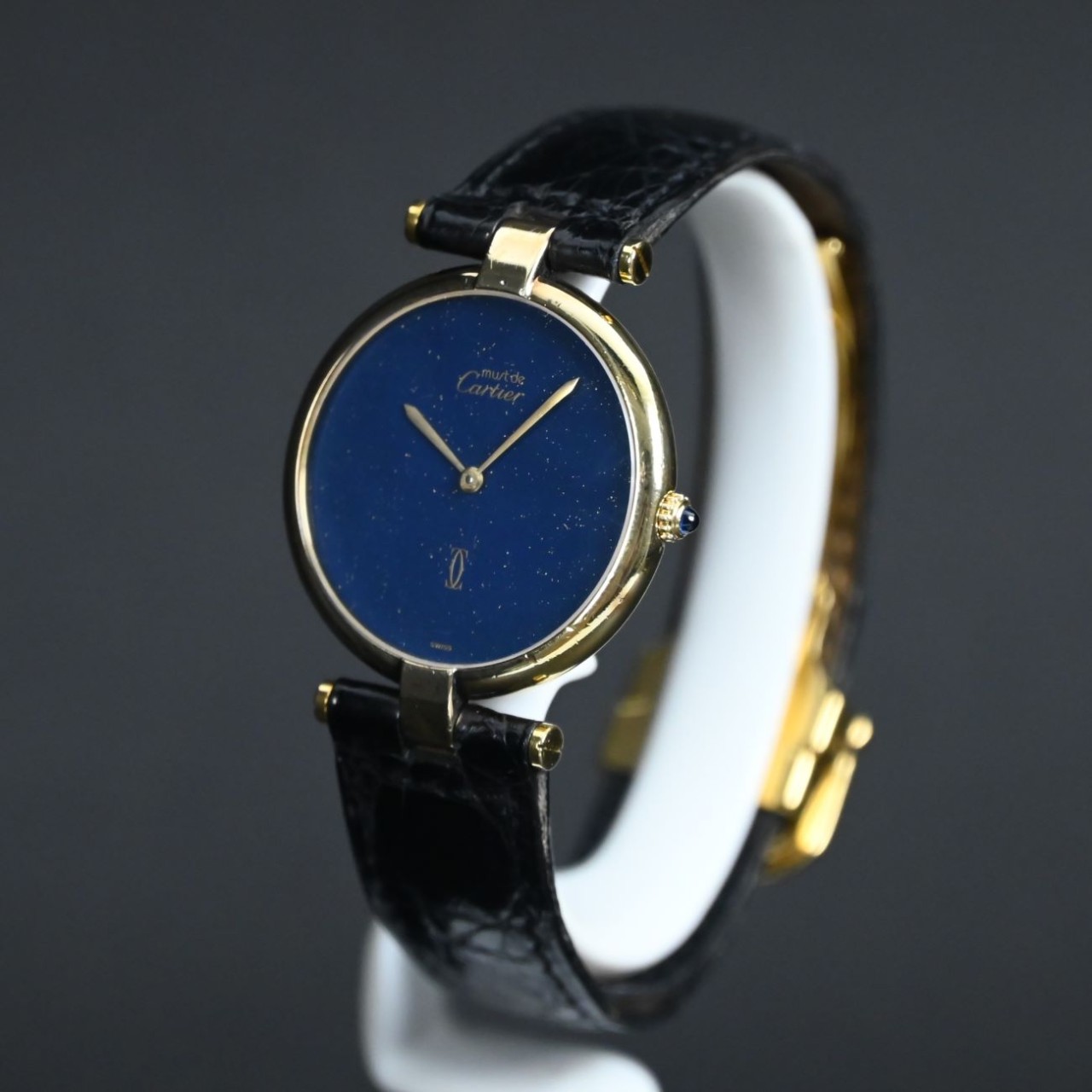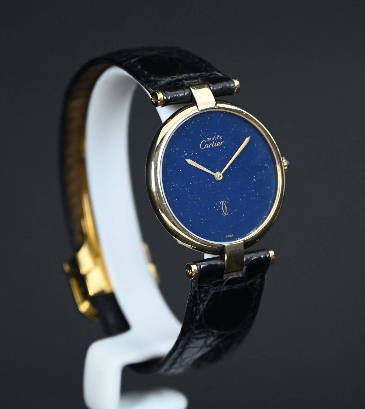 The Cartier Must De Cartier Vendome stands out for its classic round design, elegant Roman-numeral dial, and warm vermeil case. It offers accessible Cartier luxury, reliable quartz accuracy, and a timeless look that suits both daily wear and special occasions.