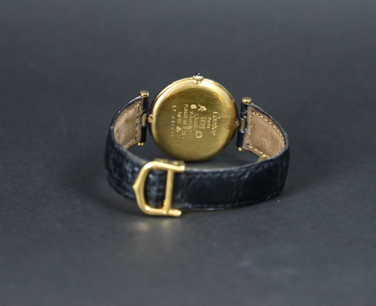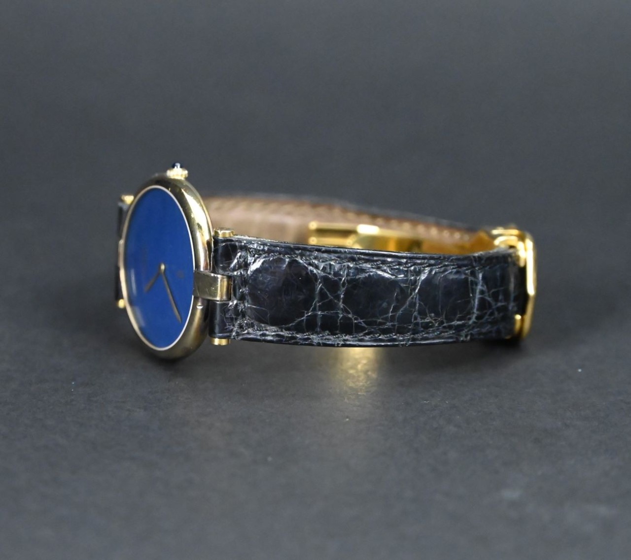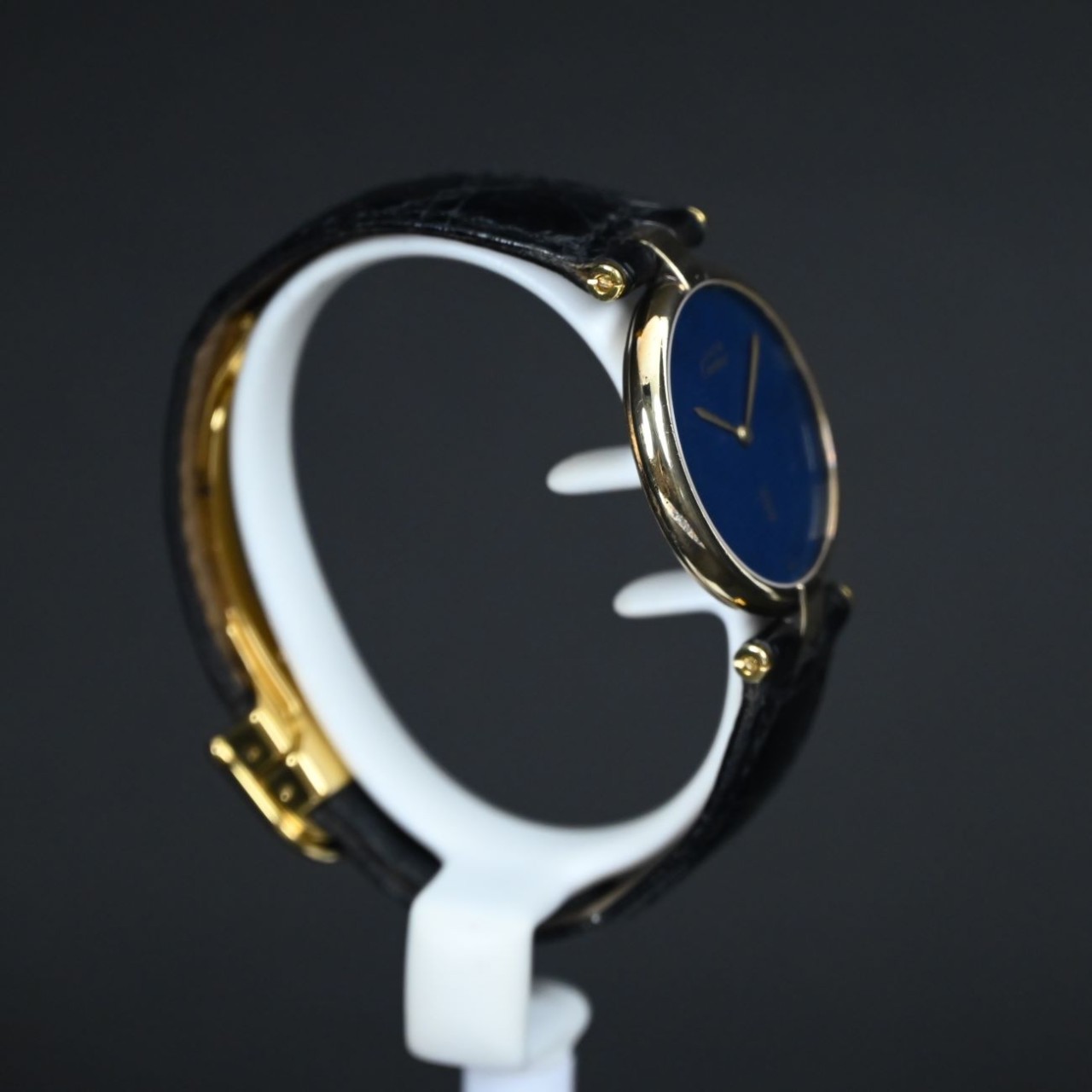 Inside is a reliable quartz movement. It keeps accurate time with little effort from the wearer and requires only occasional battery changes. The movement keeps the watch thin and light, making it comfortable for long wear. Cartier’s quartz calibres from this era are known for strong reliability, so the watch offers practicality along with luxury styling.