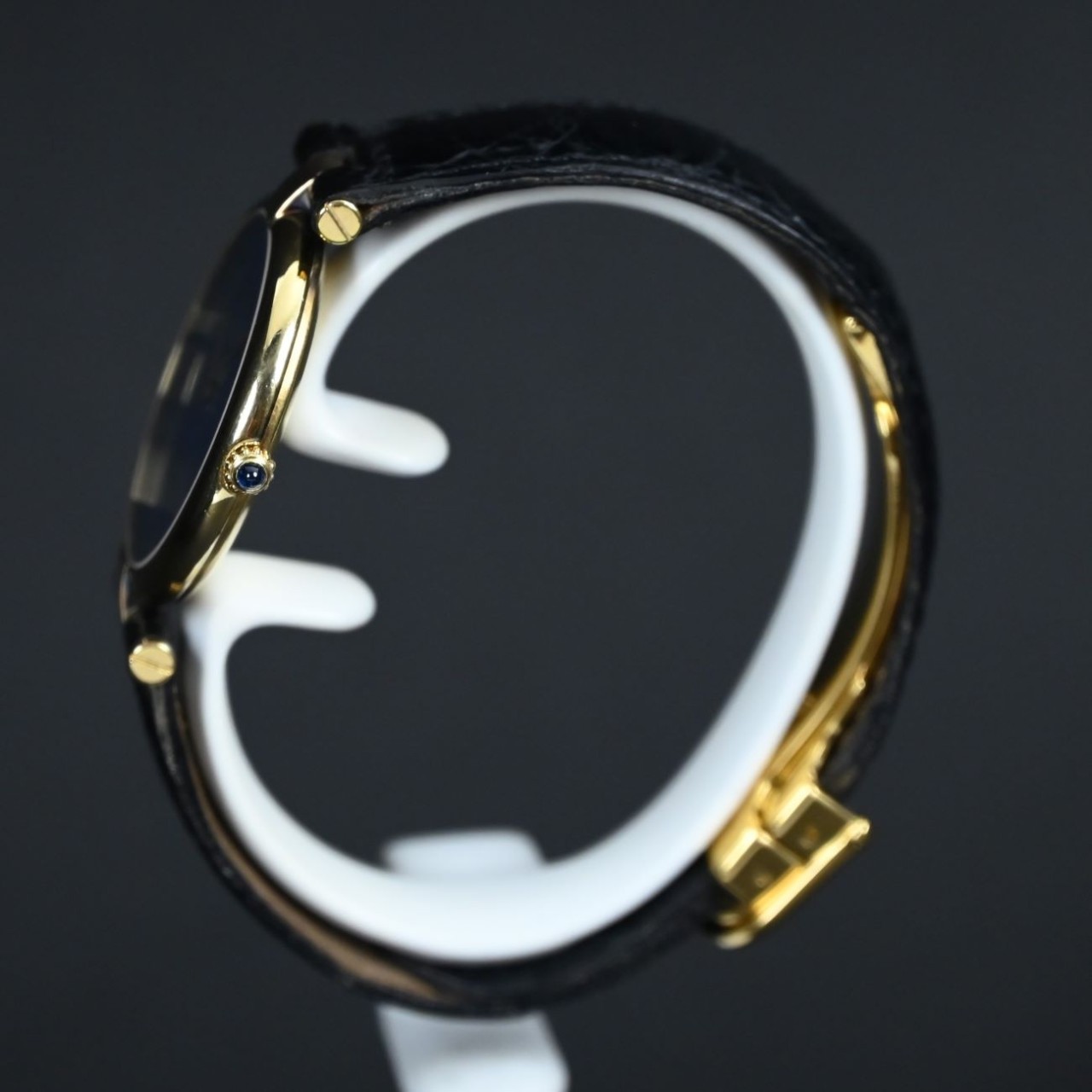 Inside the 59003 is a reliable quartz movement. It keeps accurate time with little effort from the wearer and requires only occasional battery changes. The movement keeps the watch thin and light, making it comfortable for long wear. Cartier’s quartz calibres from this era are known for strong reliability, so the watch offers practicality along with luxury styling.