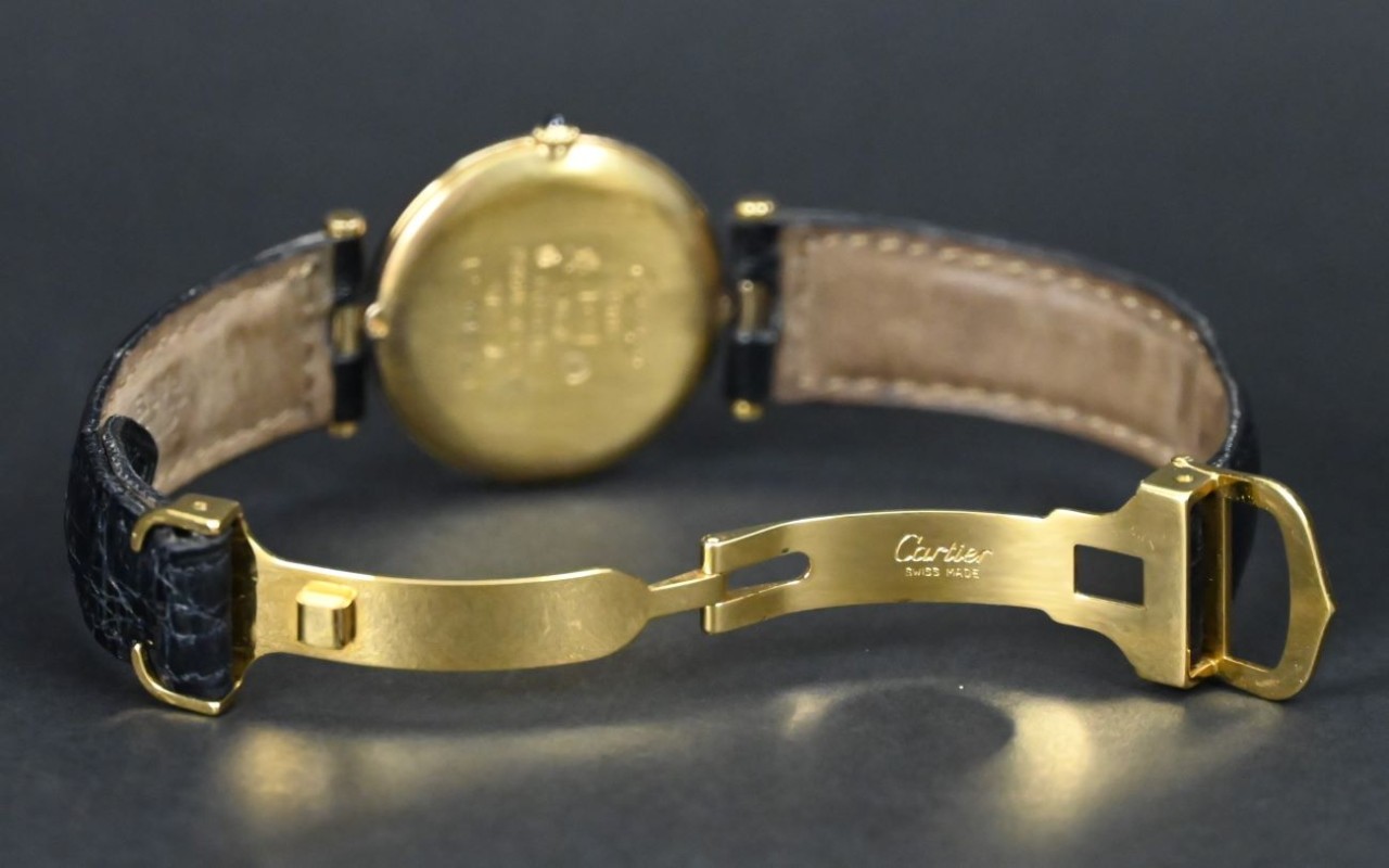 The Cartier Vermeil Must Vendome 59003 stands out for its classic round design, elegant Roman-numeral dial, and warm vermeil case. It offers accessible Cartier luxury, reliable quartz accuracy, and a timeless look that suits both daily wear and special occasions.
