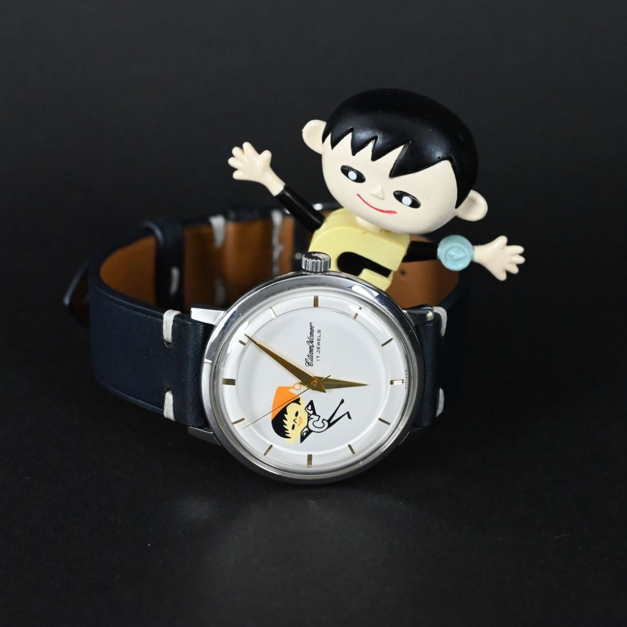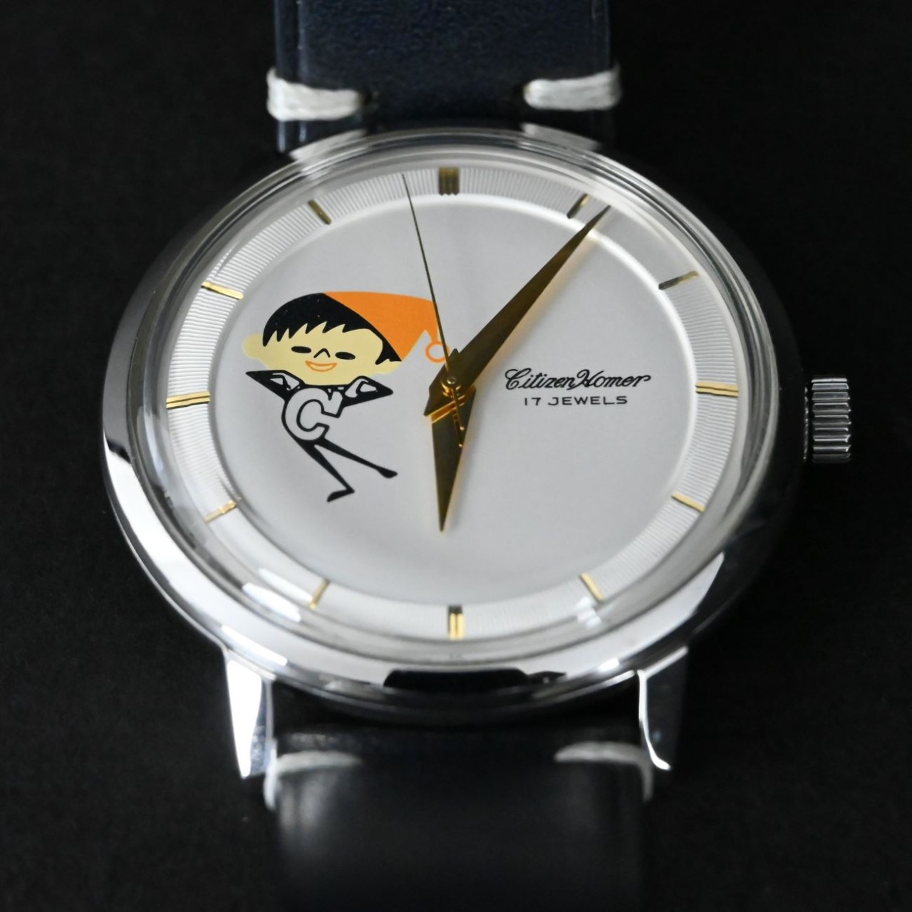 This watch is special because it celebrates Citizen’s 70th anniversary and features the rare C-chan character on the dial. It combines vintage Homer design with playful artwork, making it both collectible and meaningful for Citizen fans and vintage watch collectors.