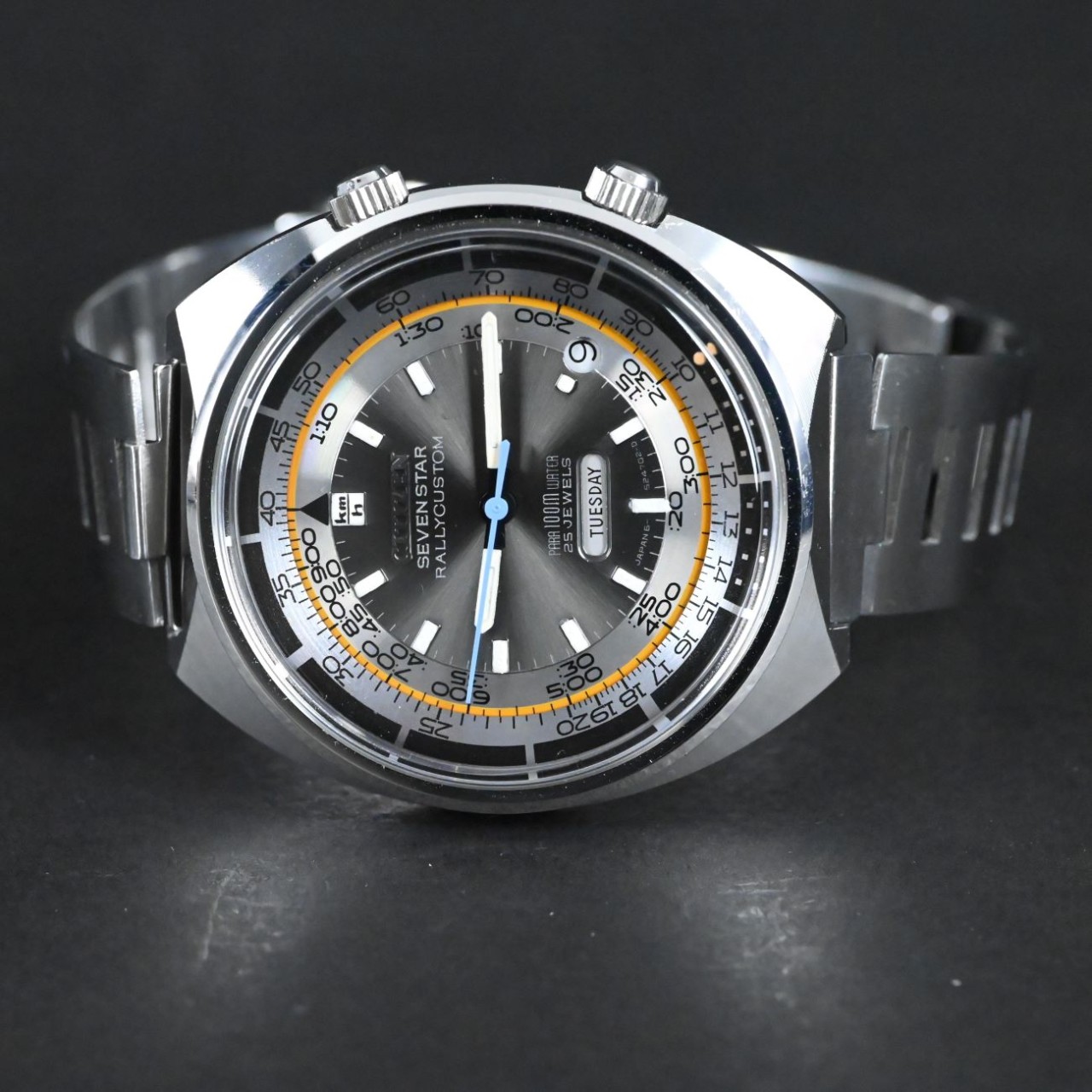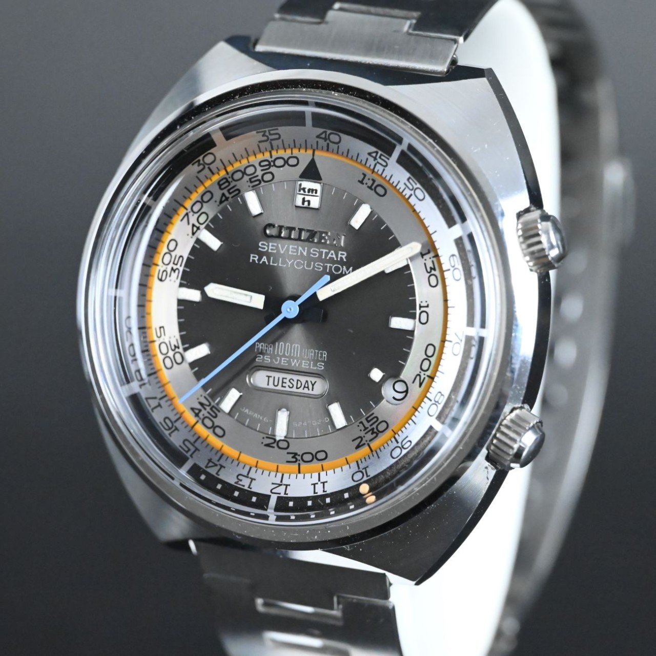 As for the history of the model: the “Rally Custom” was introduced by Citizen in the late 1960s/early 1970s as part of the broader Seven Star series. The Rally Custom — along with other “Custom” siblings such as “Yacht Custom” and “Soccer Custom” — was aimed at sport- and activity-oriented wearers. Vintage Citizen Watches. The intent was to provide a robust, versatile automatic watch with useful features (like a rotating inner bezel) for rally drivers, sailors or sports-minded individuals — a kind of tool-watch with a bit of flair. Over time it has become a rather rare and sought-after vintage piece, especially in well-preserved and original condition