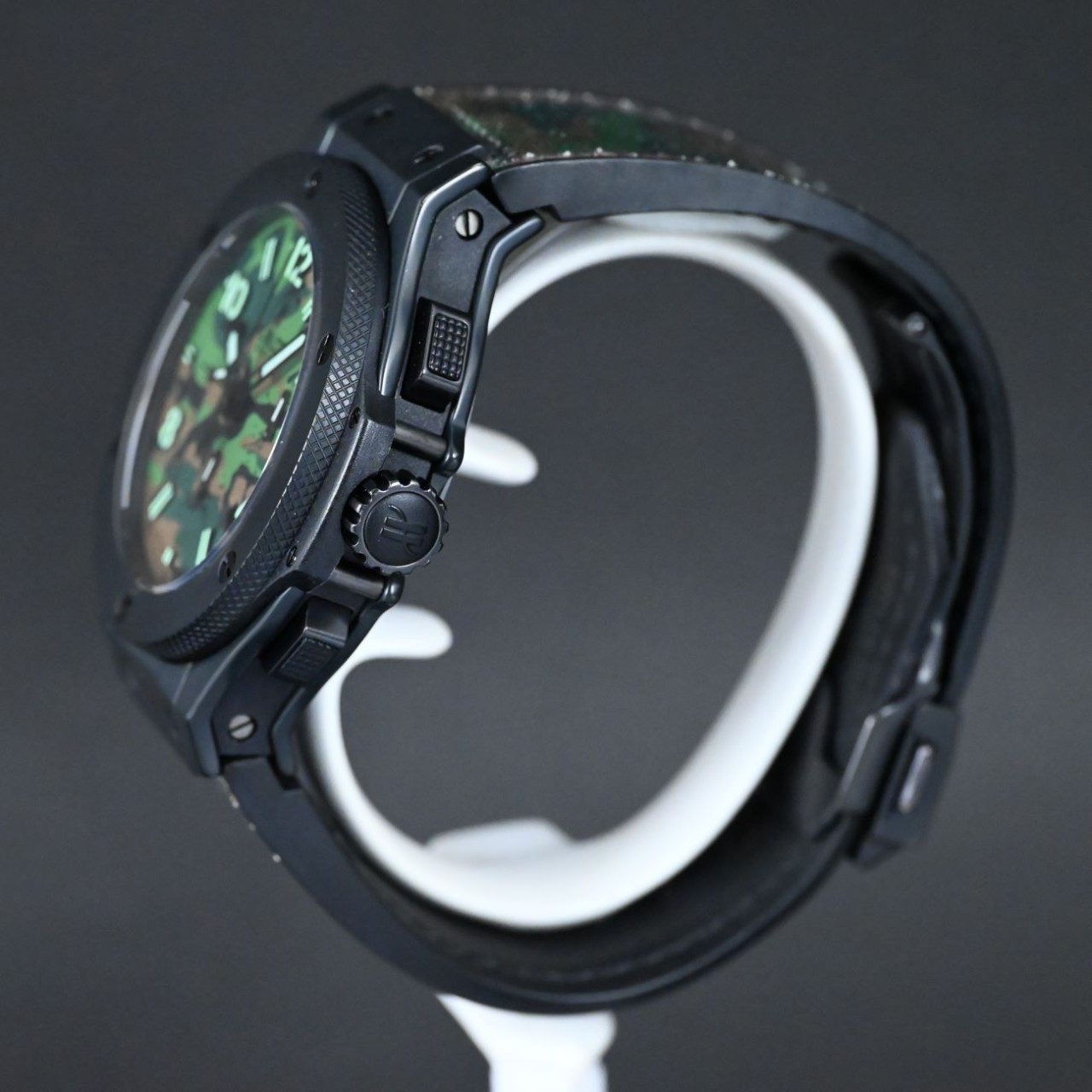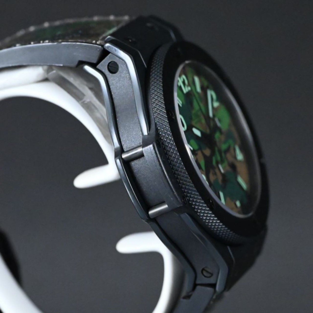 Hublot released this model as part of a limited series of 250 pieces, celebrating the brand’s bold approach to color and material experimentation. The Commando Jungle edition reflects Hublot’s strategy of combining luxury watchmaking with modern themes, making it a standout piece for collectors who enjoy unique and adventurous designs