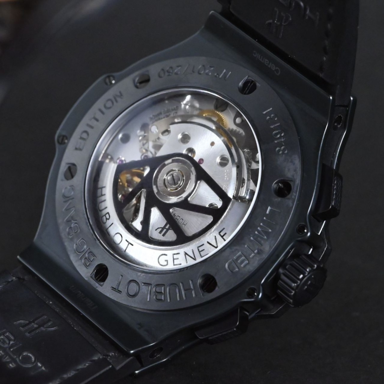 | Bezel | Ceramic Bezel Features Signature Hublot Screw Accents |