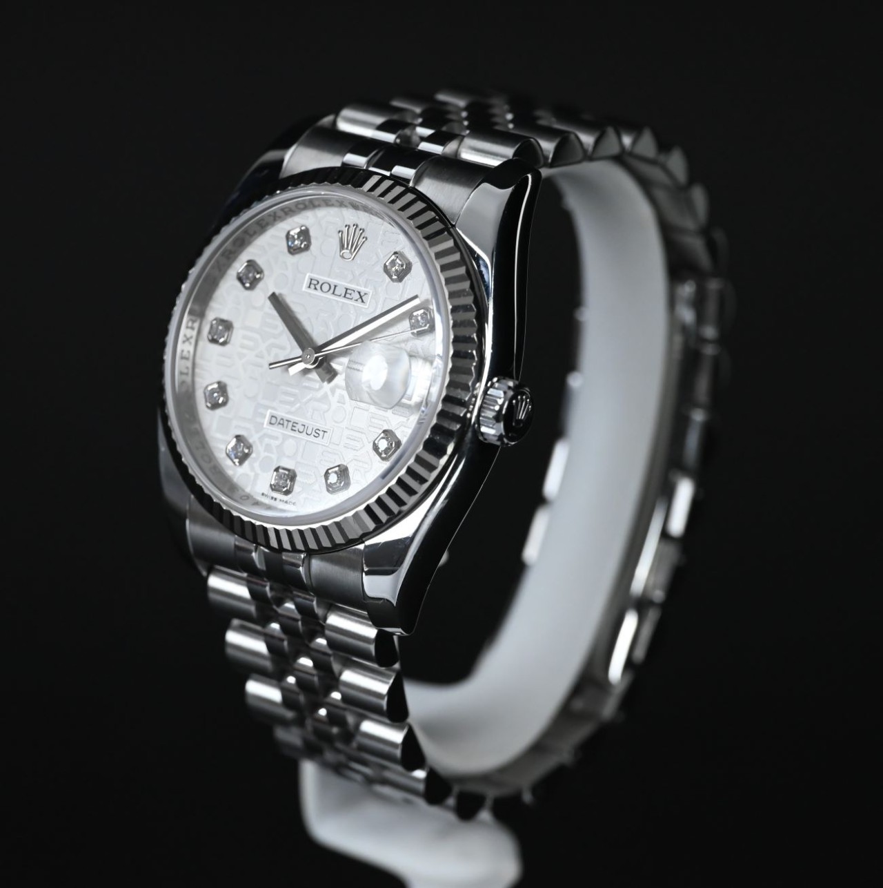 What makes this watch especially appealing is how effortlessly it adapts to different settings. It works just as well with formal wear as it does with casual clothing, thanks to its clean lines and restrained elegance. The diamond markers add just the right amount of sparkle without overshadowing the watch’s classic aesthetic. Whether worn daily or saved for more refined occasions, the 116234 feels consistently appropriate and rewarding. For enthusiasts, it offers a perfect blend of prestige, practicality, and timeless appeal; for newcomers, it serves as a welcoming introduction to Rolex craftsmanship. In every sense, this watch embodies the enduring charm and reliability that have made the Datejust one of the most iconic models in the history of modern watchmaking.
