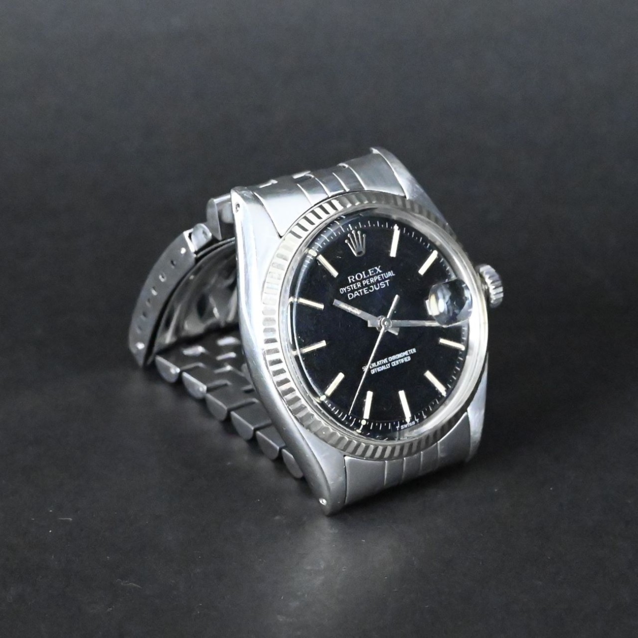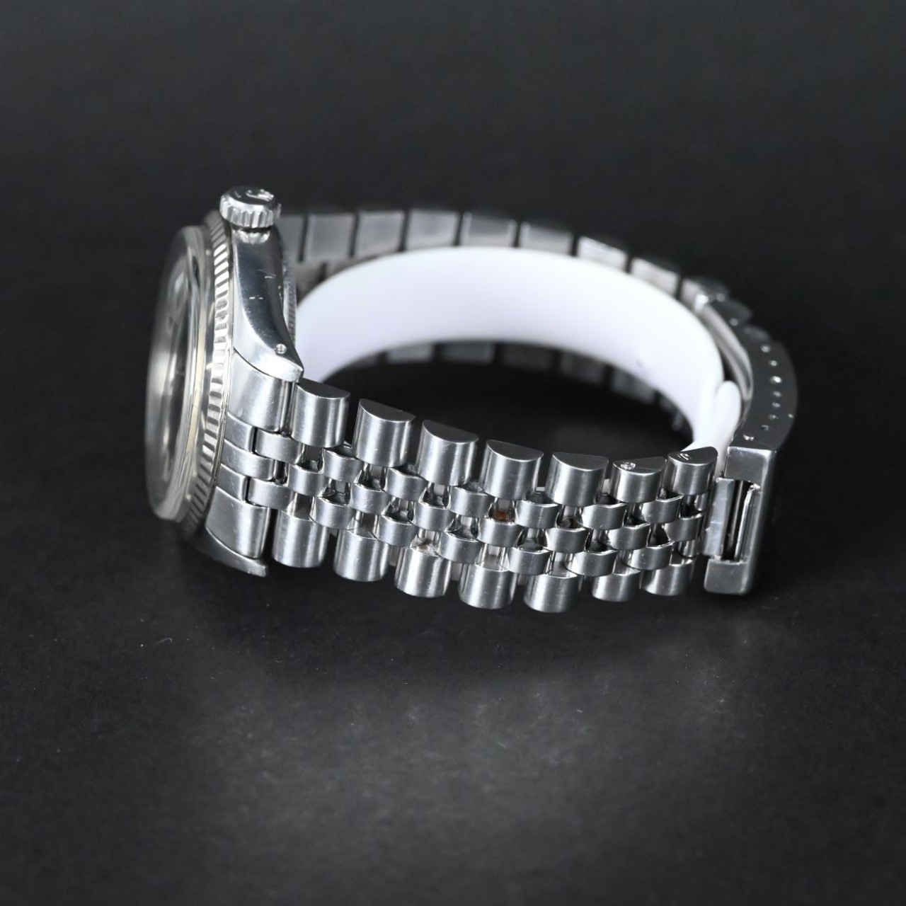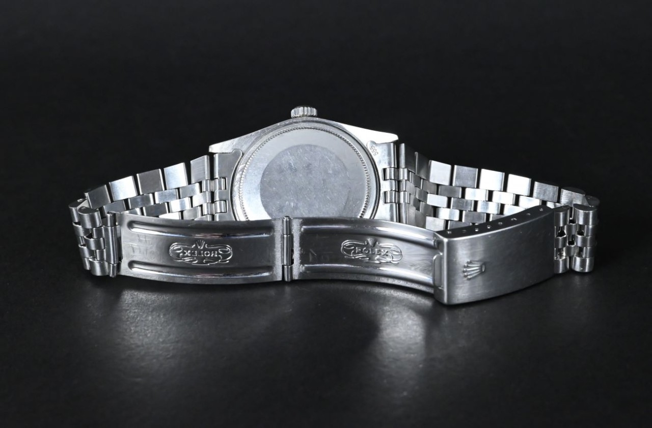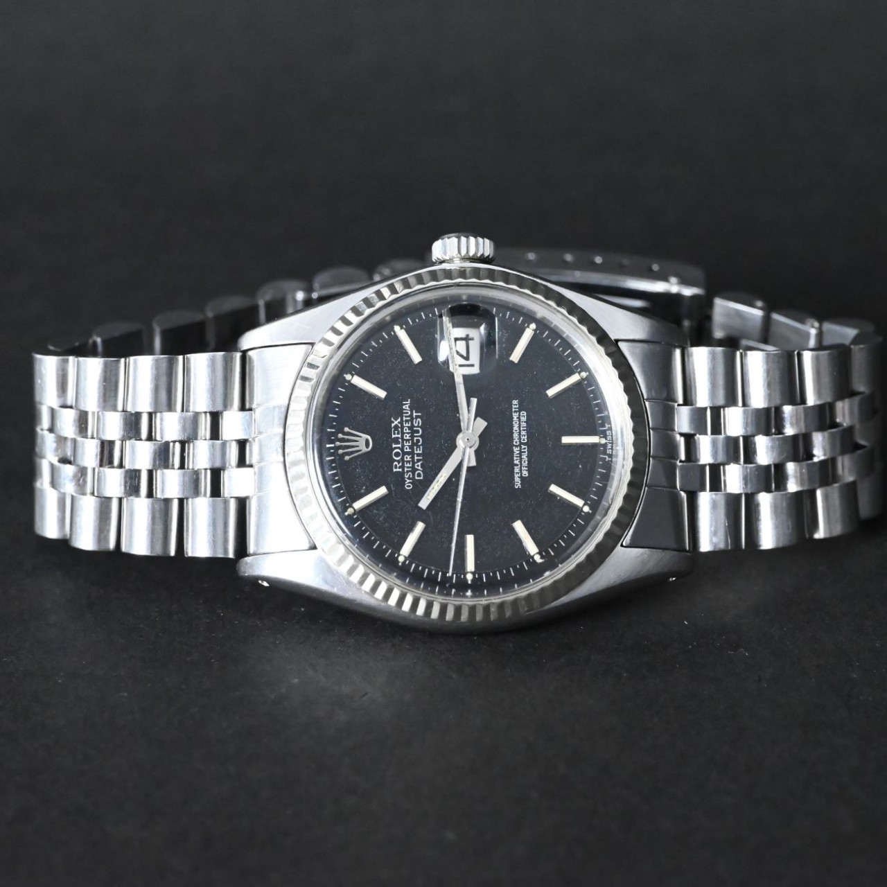 The Rolex Datejust 1601 with a black matte dial carries a classic vintage look that stands out with its simple, clean finish. The 36 mm steel case feels balanced on the wrist, and the white-gold fluted bezel adds a subtle shine without overpowering the dial. Its acrylic crystal gives the watch a warm, retro character with a soft dome that plays gently with the light. Paired with either an Oyster or Jubilee bracelet, the watch offers a comfortable fit and a refined presence
