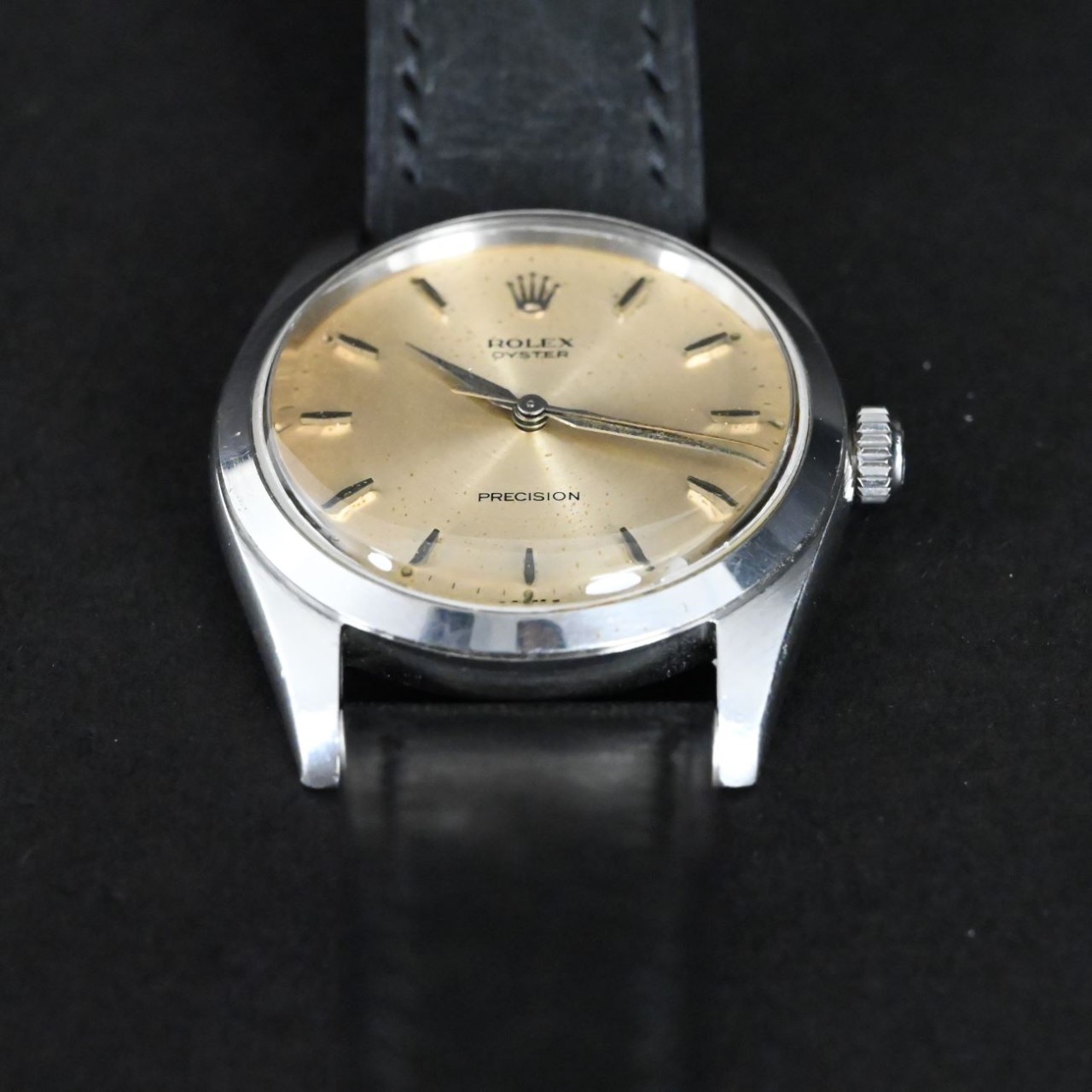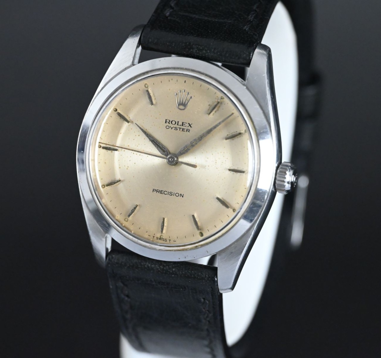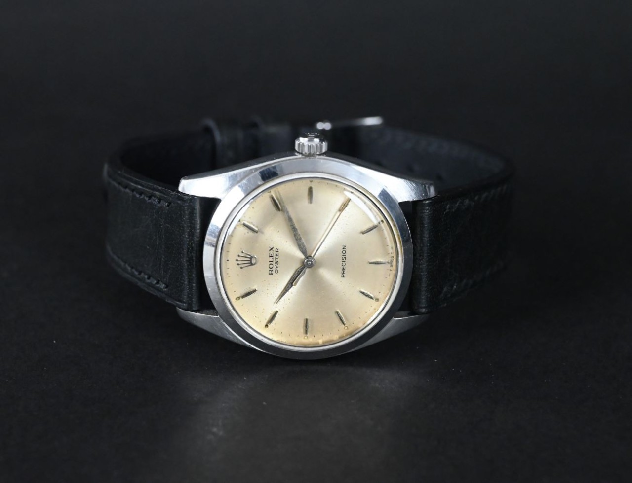 Rolex introduced the reference 6424 in the late 1950s, during a period where the brand solidified its tool-watch reputation. It sits within the broader 'Precision' line, which denoted watches adjusted to high standards of timekeeping but without the self-winding rotor of the more expensive 'Perpetual' models. This watch represents the essential, no-nonsense core of the Rolex Oyster principle—offering superb durability, clean design, and reliable timekeeping in a recognisable and enduring package