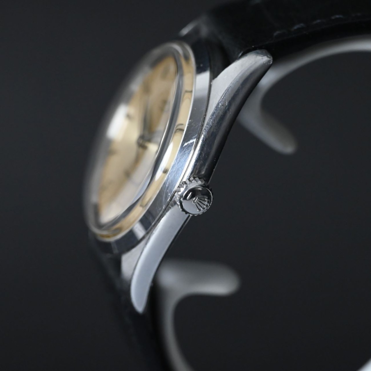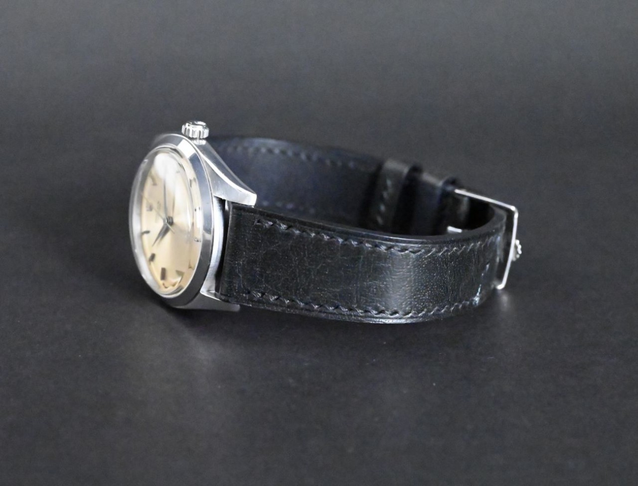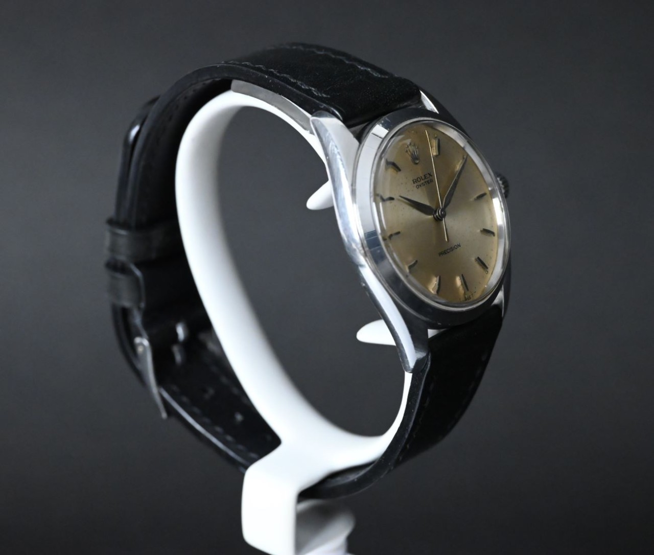 Rolex introduced the reference 6424 in the late 1950s, during a period where the brand solidified its tool-watch reputation. It sits within the broader 'Precision' line, which denoted watches adjusted to high standards of timekeeping but without the self-winding rotor of the more expensive 'Perpetual' models. This watch represents the essential, no-nonsense core of the Rolex Oyster principle—offering superb durability, clean design, and reliable timekeeping in a recognisable and enduring package