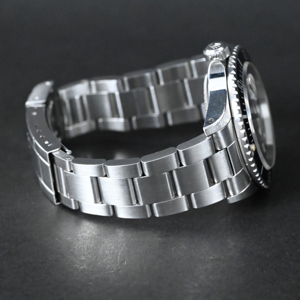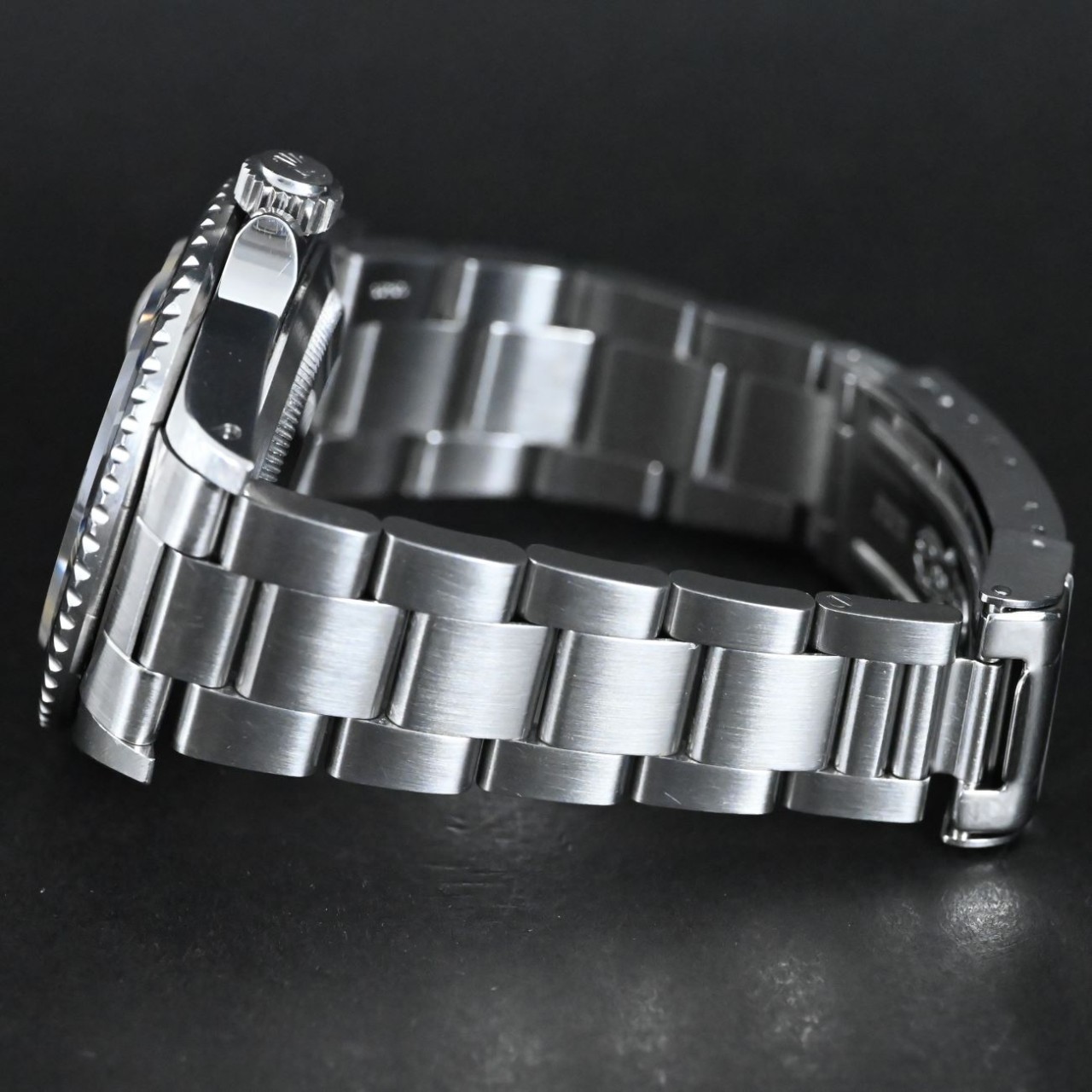 The watch features a classic black dial with large luminous hour markers and Mercedes hands that ensure excellent readability. A date window with Cyclops magnifier at 3 o’clock makes the date easy to read. The 40 mm stainless steel Oyster case feels solid and purposeful, paired with a scratch-resistant sapphire crystal for strong protection and clarity. The watch comes with a steel Oyster bracelet that feels secure and balanced, designed for durability and comfort during daily wear and diving use.
