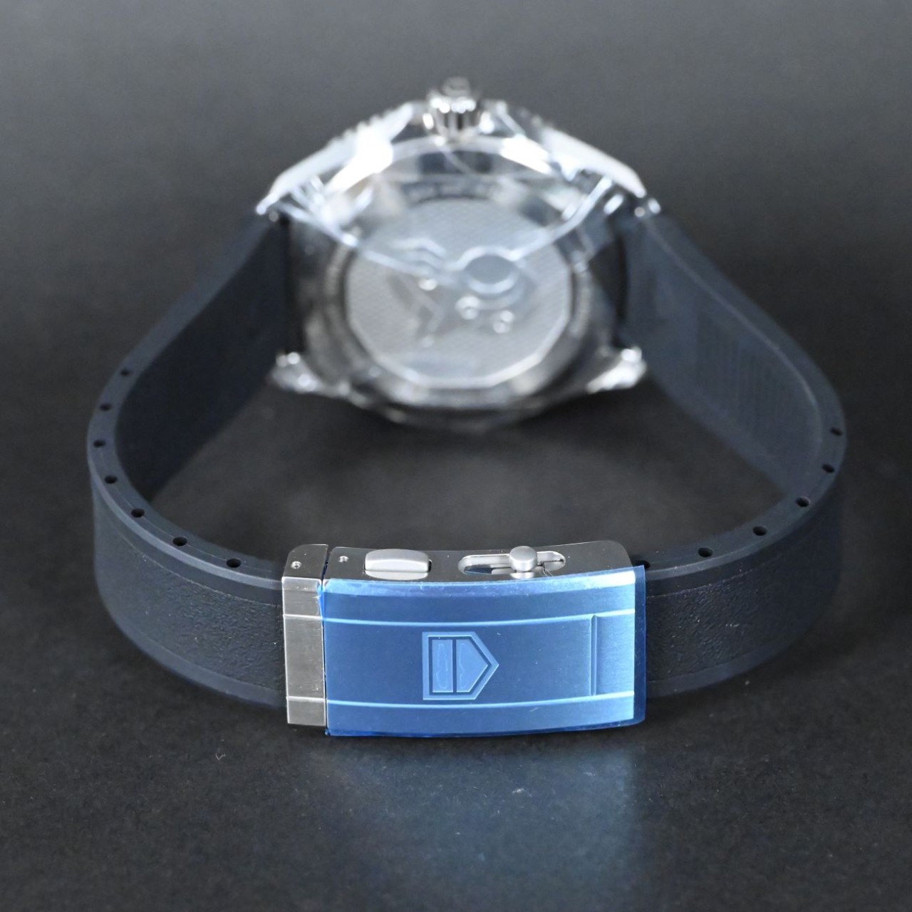 Under the dial, the watch runs on TAG Heuer’s Calibre TH31-00 automatic movement, which is COSC-certified for chronometer accuracy. This movement beats at 28,800 vph (4 Hz) and delivers an impressive 80-hour power reserve, meaning you can set it down for a couple of days and still have it running when you pick it up again. The automatic rotor winds efficiently as you wear it, and the date changes cleanly at midnight. As a certified chronometer, the movement promises solid timekeeping well within strict performance limits.