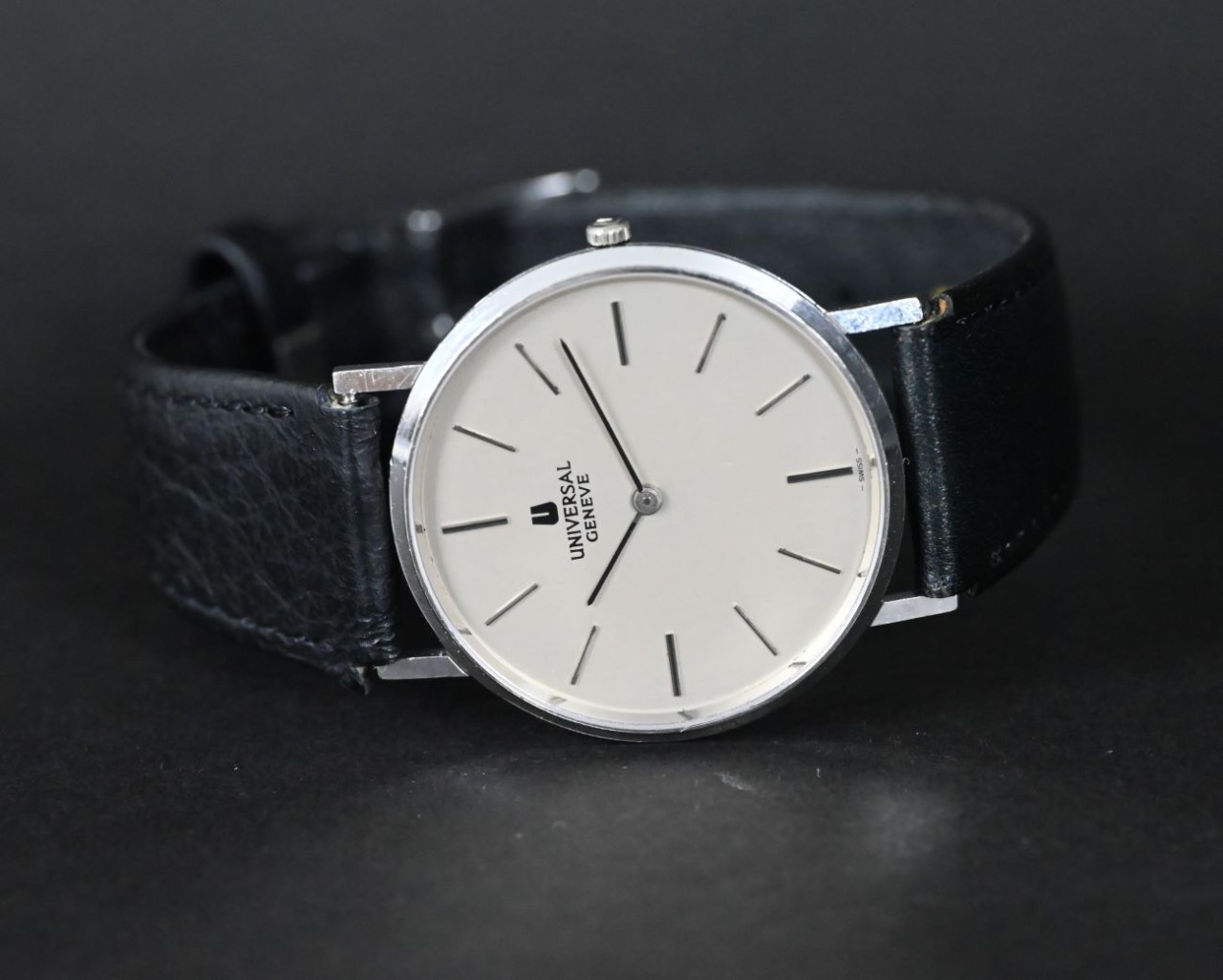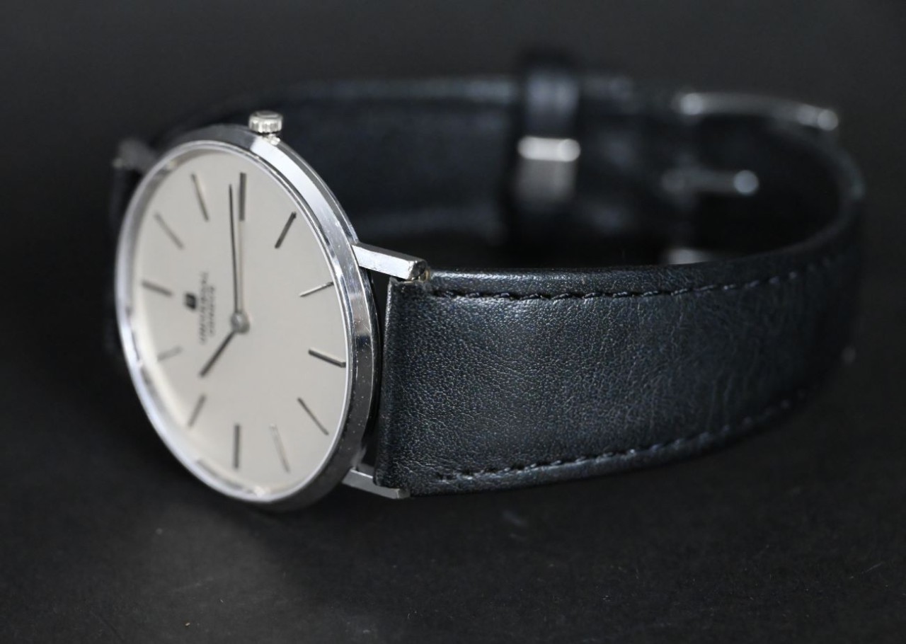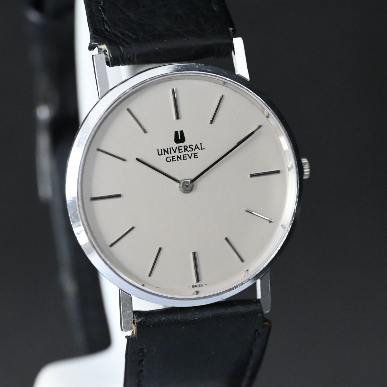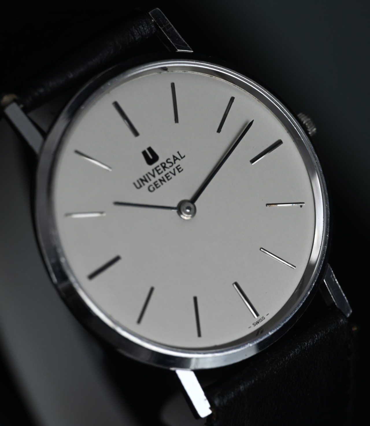 The Universal Genève Altesse ref. 342100 stands out for its ultra-thin white gold case and elegant, minimalist design. It feels light and refined on the wrist. Its manual-wind movement keeps the watch slim and reliable. Collectors value it for its subtle textures, vintage charm, and quiet luxury appeal.