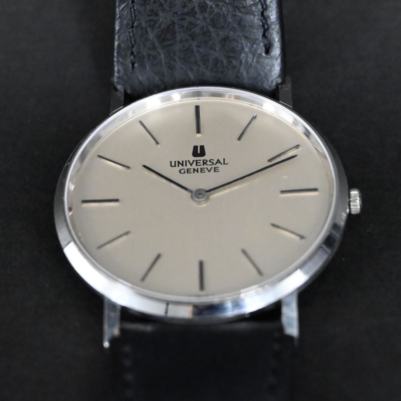 Inside, the ref. 342100 often uses a manual-wind movement such as the Universal Genève Calibre 1-42, a very thin and straightforward time-only movement . This movement focuses on slimness and reliability rather than complications, which fits the watch’s dress purpose. It winds smoothly and keeps good time when serviced, and its thin construction is what allows the case to stay so elegant. While not highly decorated, it reflects Universal Genève’s strong technical capability in producing compact, efficient calibers during that era.