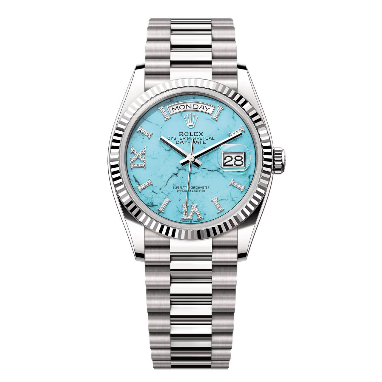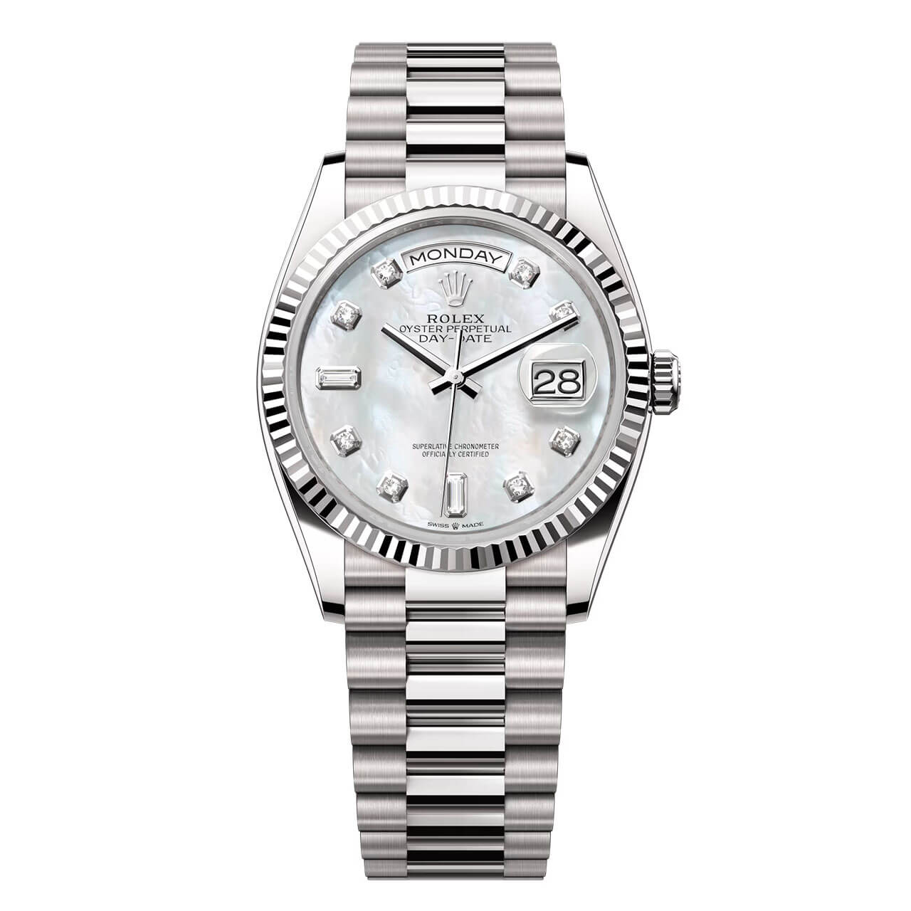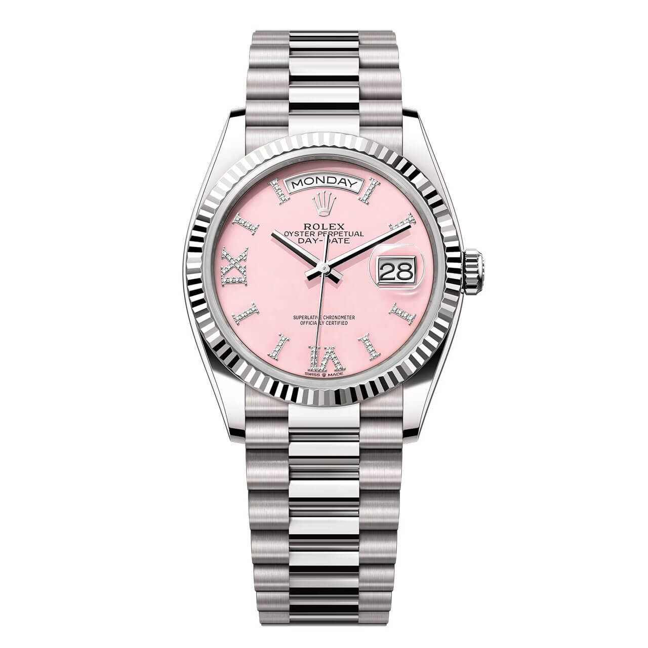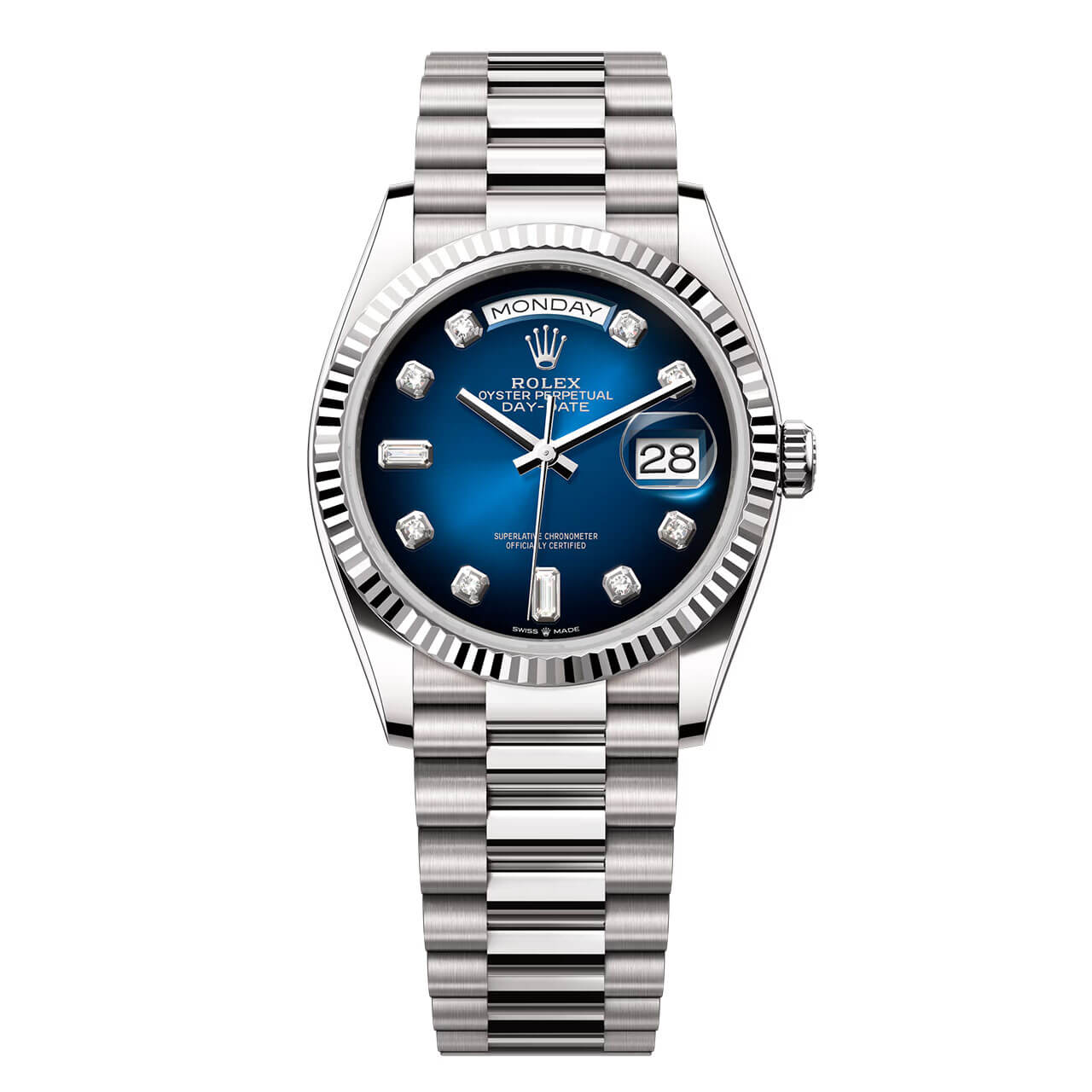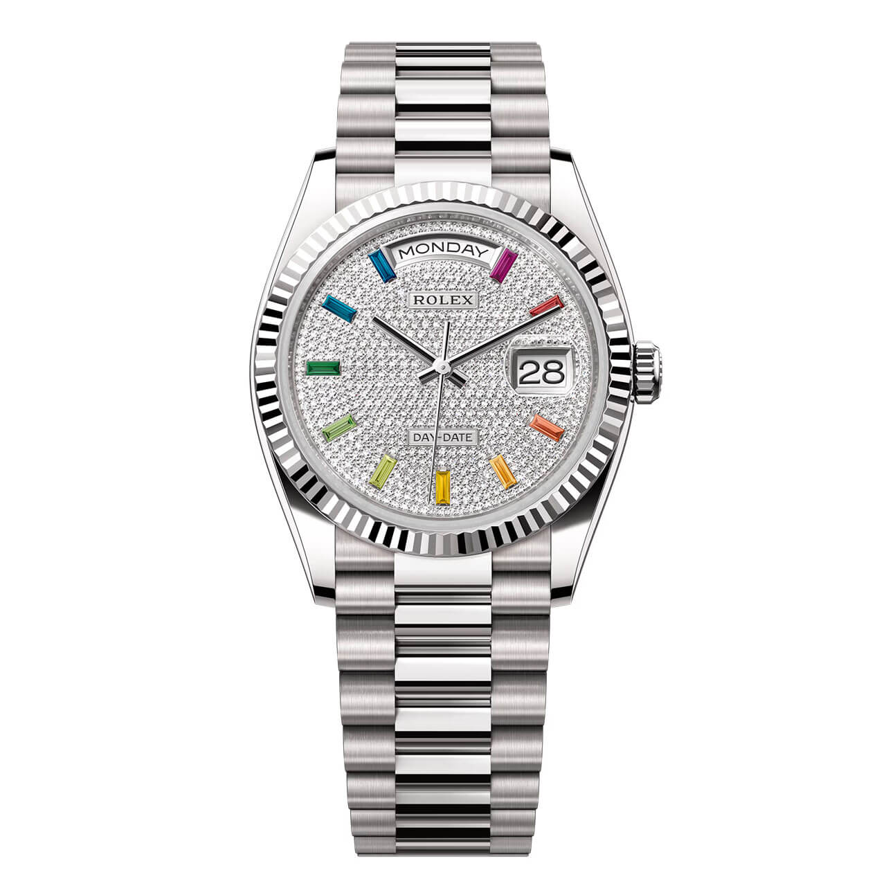 Introduced in 1956, the Rolex Day-Date was the very first self-winding wristwatch to feature not only a date window but also a window for the day of the week, spelt out in full and offered today in 26 languages. The Day-Date is the only model that Rolex has never offered for sale in steel – only gold and platinum, hence it was associated with power and success and found its way onto the wrists of many American presidents. Consequently, Rolex dubbed the Day-Date’s bracelet the President, though this nickname has spilled over to cover the whole watch in collector conversations.