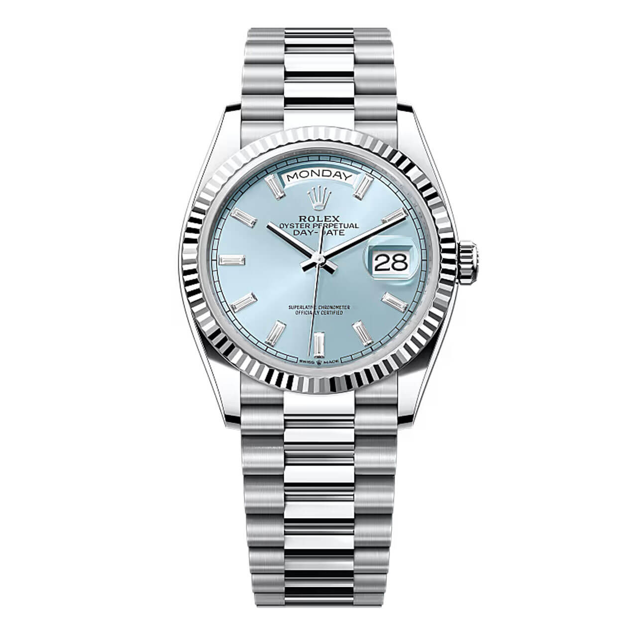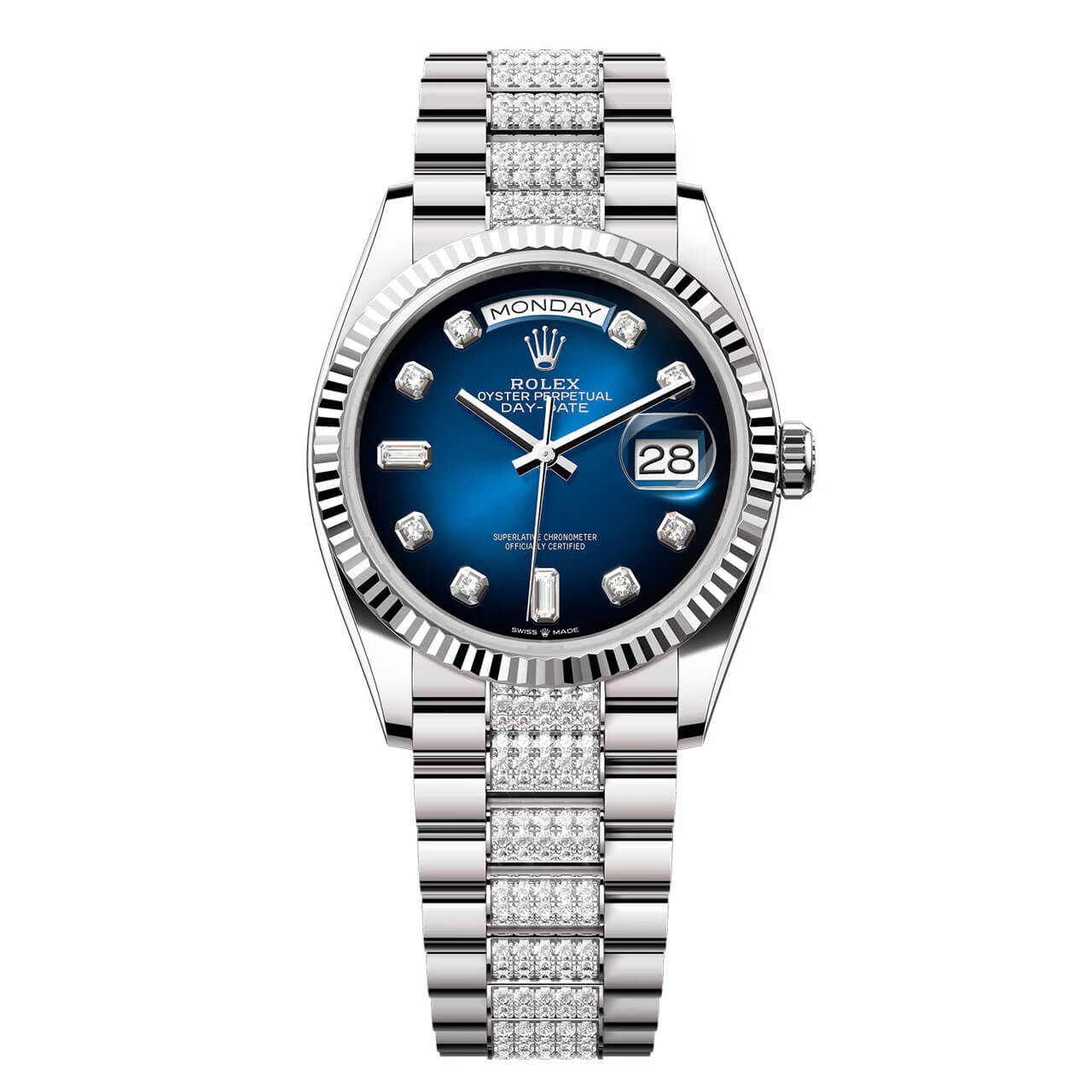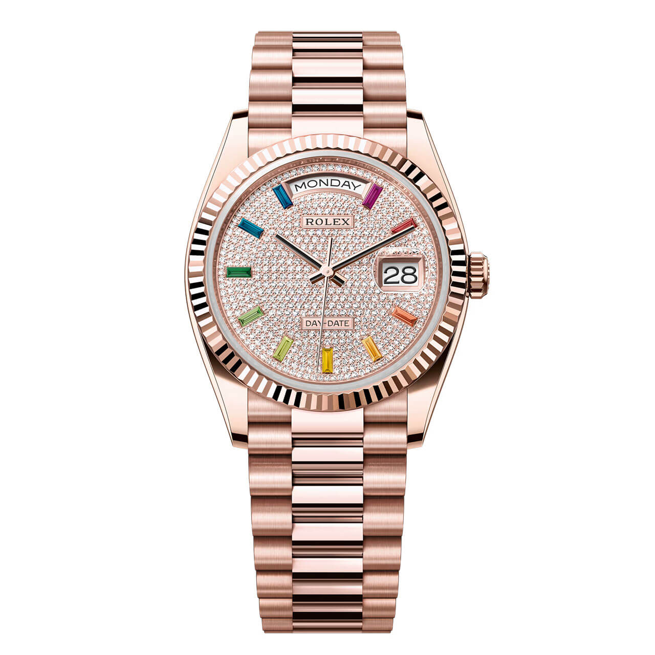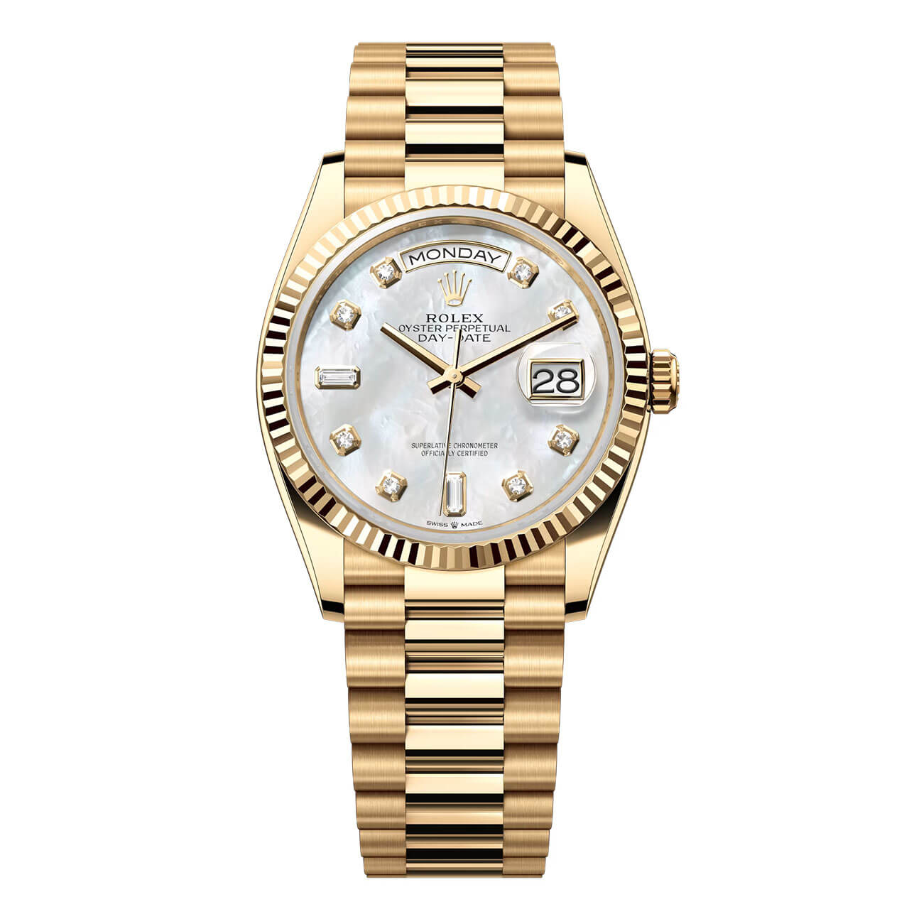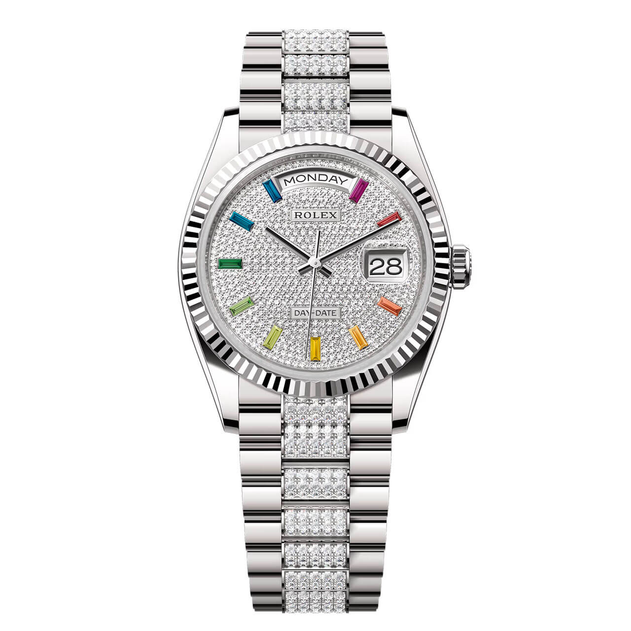Introduced in 1956, the Rolex Day-Date was the very first self-winding wristwatch to feature not only a date window but also a window for the day of the week, spelt out in full and offered today in 26 languages. The Day-Date is the only model that Rolex has never offered for sale in steel – only gold and platinum, hence it was associated with power and success and found its way onto the wrists of many American presidents. Consequently, Rolex dubbed the Day-Date’s bracelet the President, though this nickname has spilled over to cover the whole watch in collector conversations.