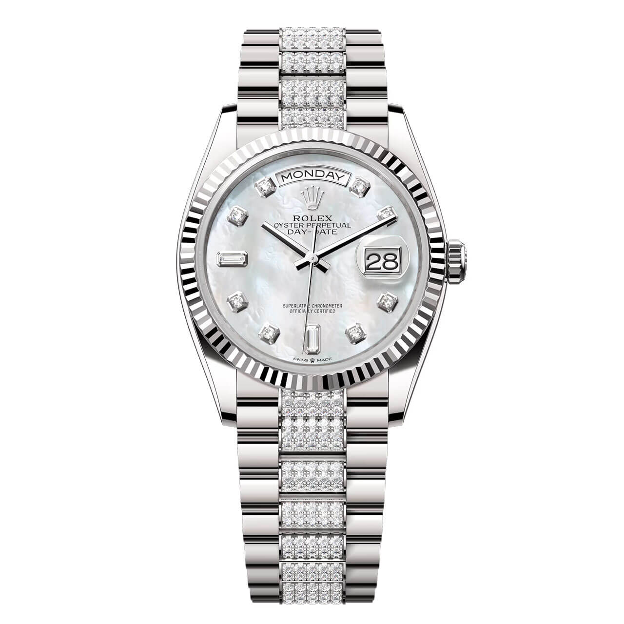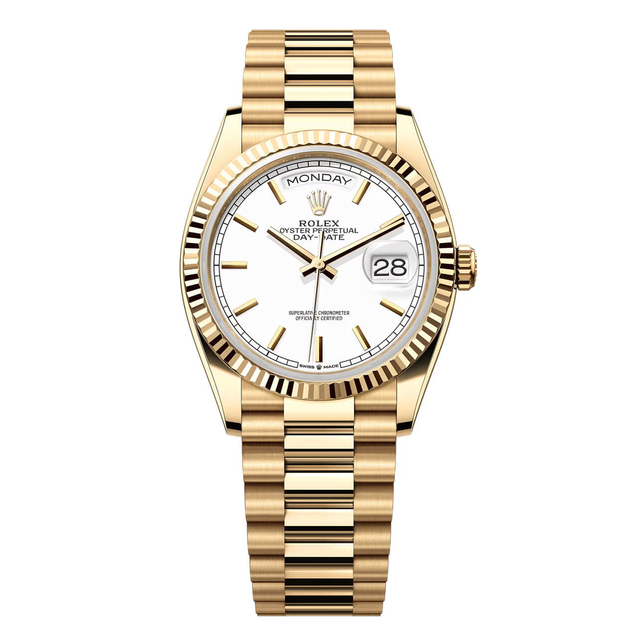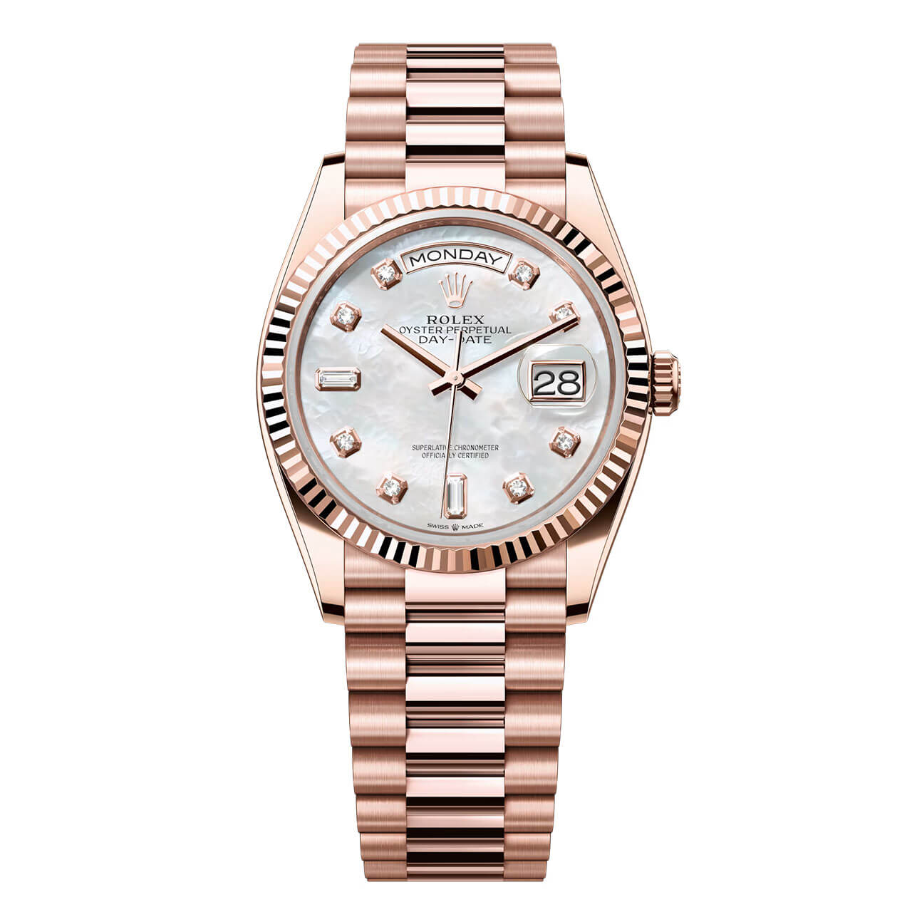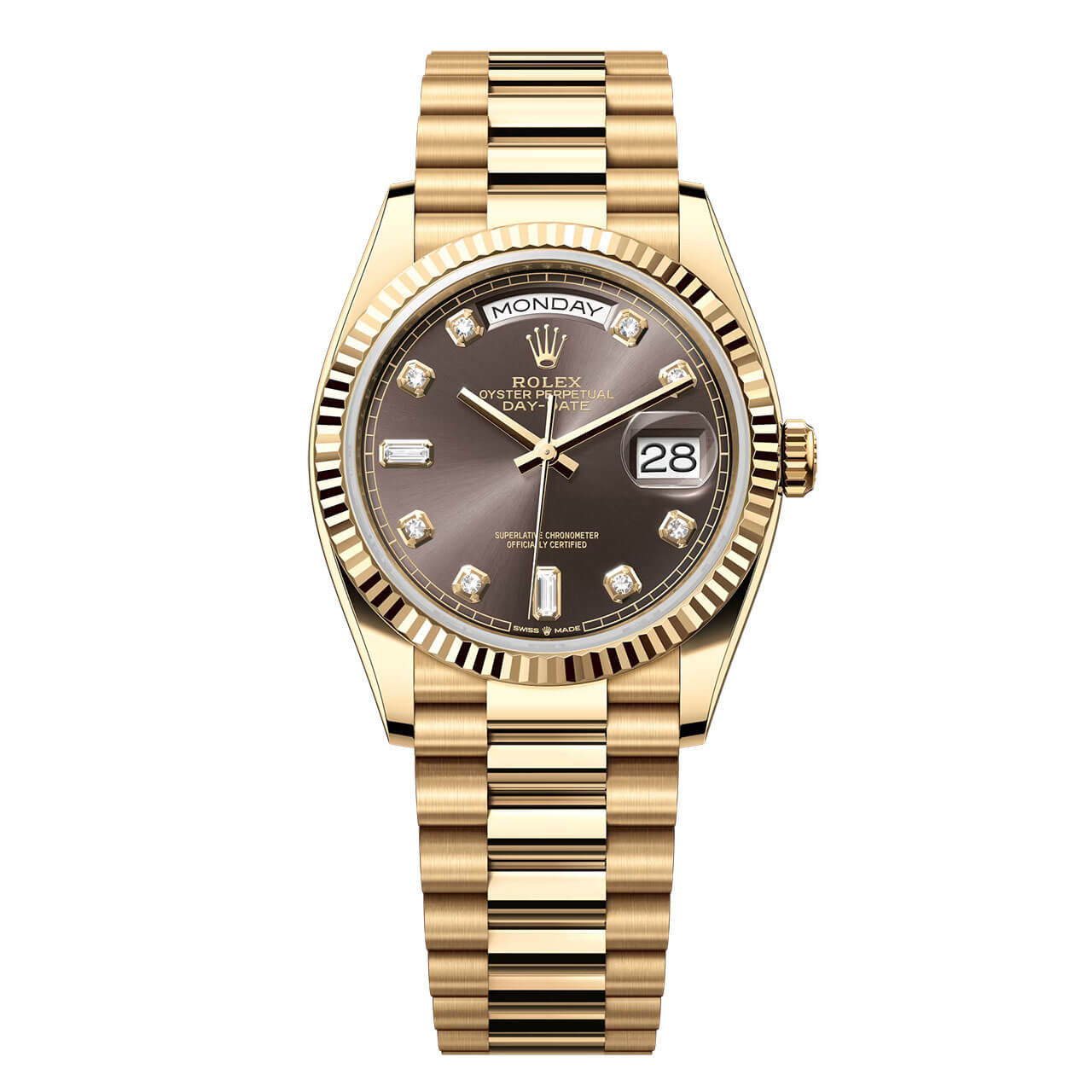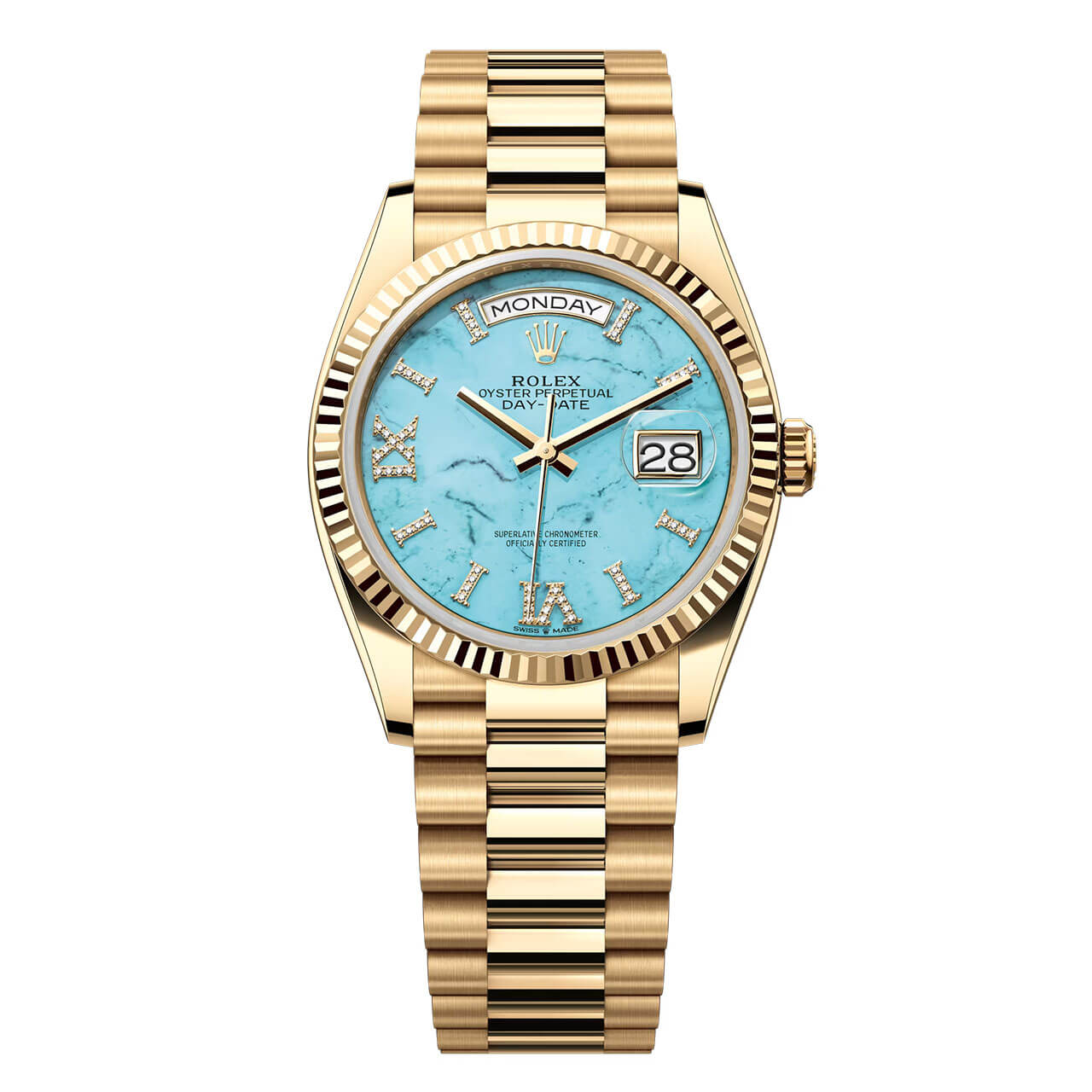 Introduced in 1956, the Rolex Day-Date was the very first self-winding wristwatch to feature not only a date window but also a window for the day of the week, spelt out in full and offered today in 26 languages. The Day-Date is the only model that Rolex has never offered for sale in steel – only gold and platinum, hence it was associated with power and success and found its way onto the wrists of many American presidents. Consequently, Rolex dubbed the Day-Date’s bracelet the President, though this nickname has spilled over to cover the whole watch in collector conversations.