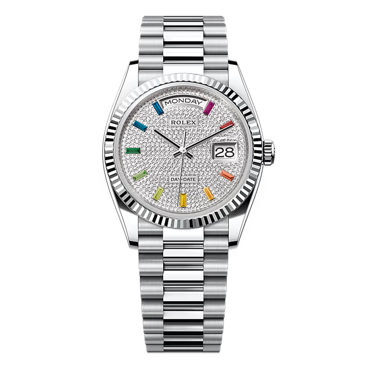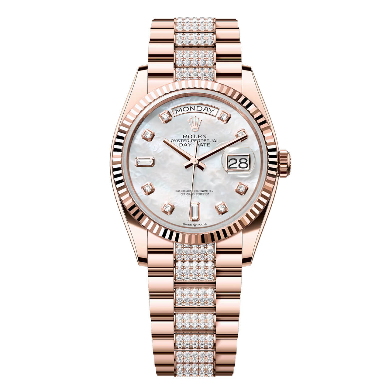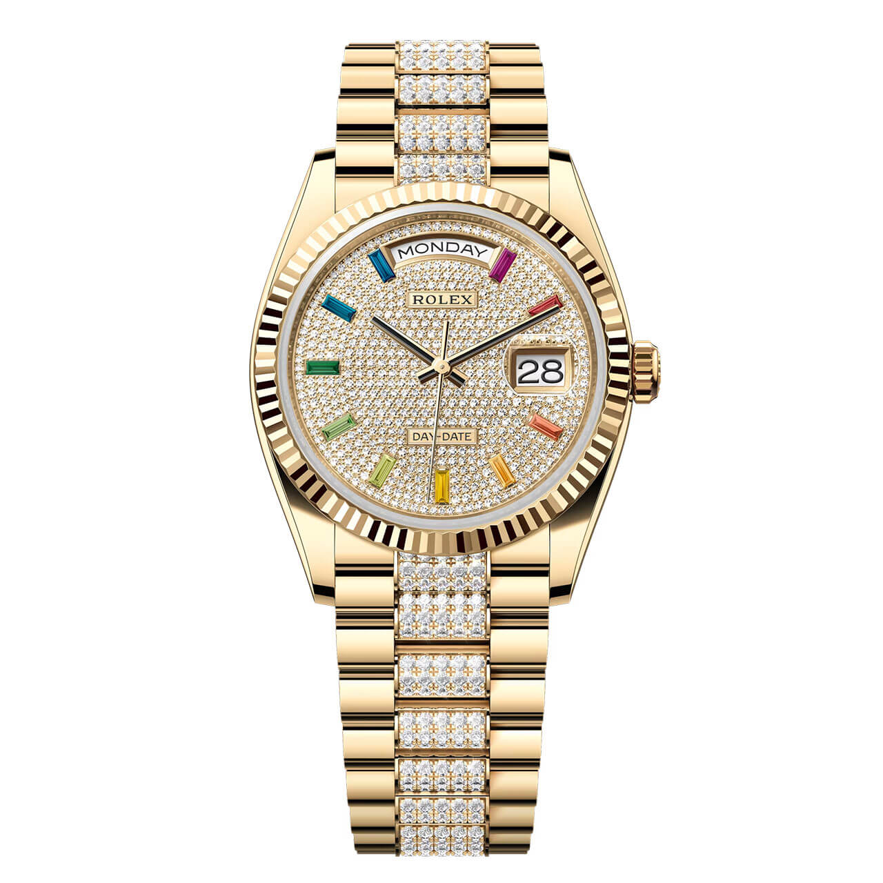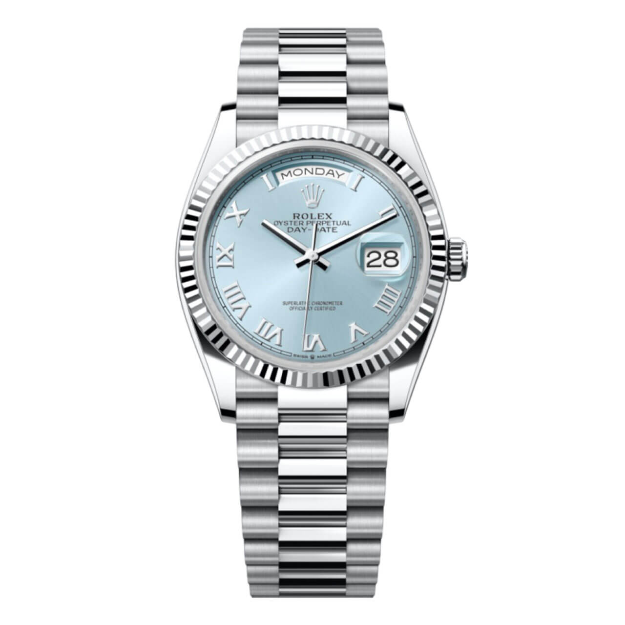 Introduced in 1956, the Rolex Day-Date was the very first self-winding wristwatch to feature not only a date window but also a window for the day of the week, spelt out in full and offered today in 26 languages. The Day-Date is the only model that Rolex has never offered for sale in steel – only gold and platinum, hence it was associated with power and success and found its way onto the wrists of many American presidents. Consequently, Rolex dubbed the Day-Date’s bracelet the President, though this nickname has spilled over to cover the whole watch in collector conversations.