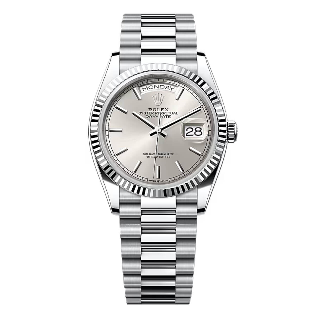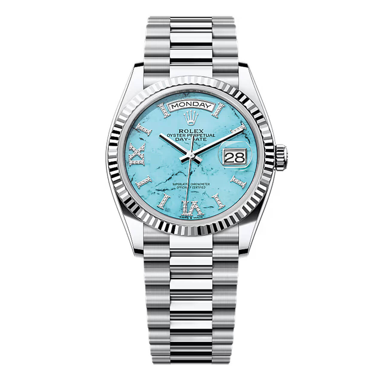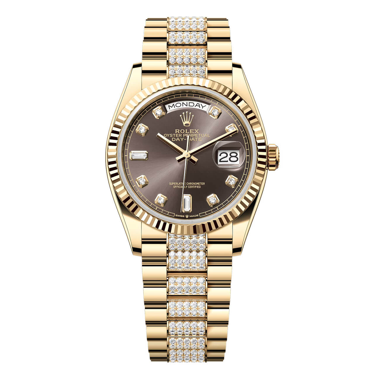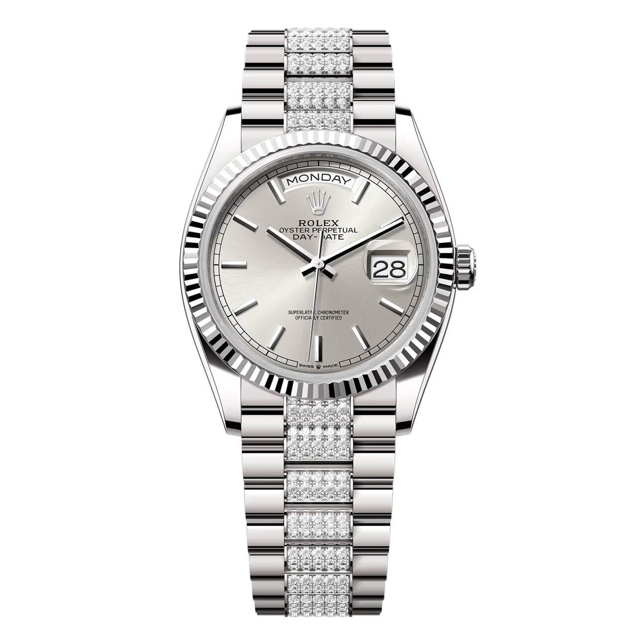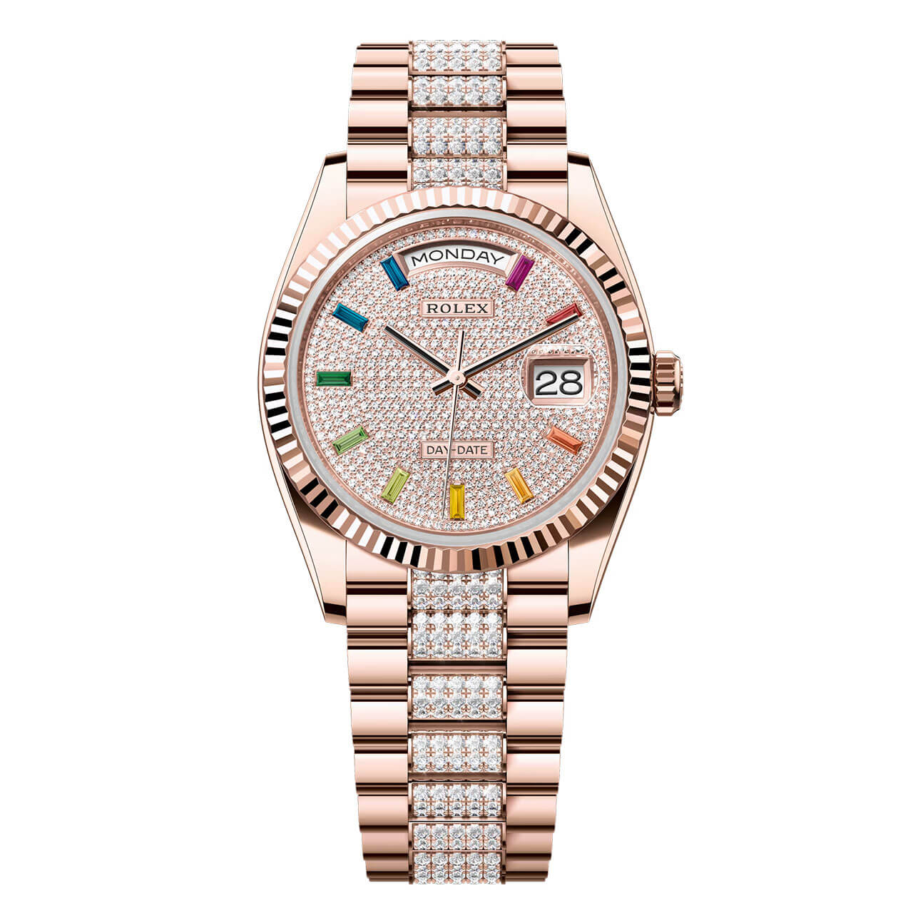 Introduced in 1956, the Rolex Day-Date was the very first self-winding wristwatch to feature not only a date window but also a window for the day of the week, spelt out in full and offered today in 26 languages. The Day-Date is the only model that Rolex has never offered for sale in steel – only gold and platinum, hence it was associated with power and success and found its way onto the wrists of many American presidents. Consequently, Rolex dubbed the Day-Date’s bracelet the President, though this nickname has spilled over to cover the whole watch in collector conversations.