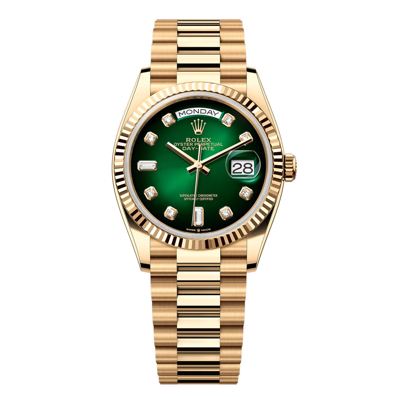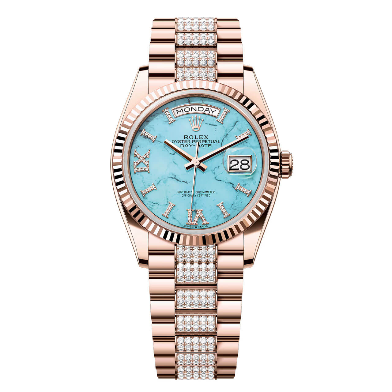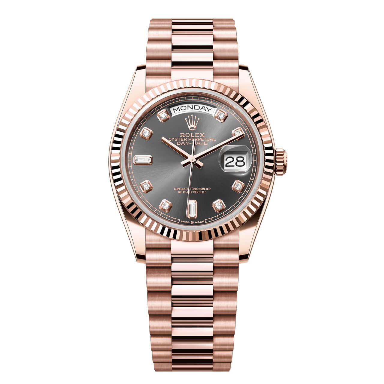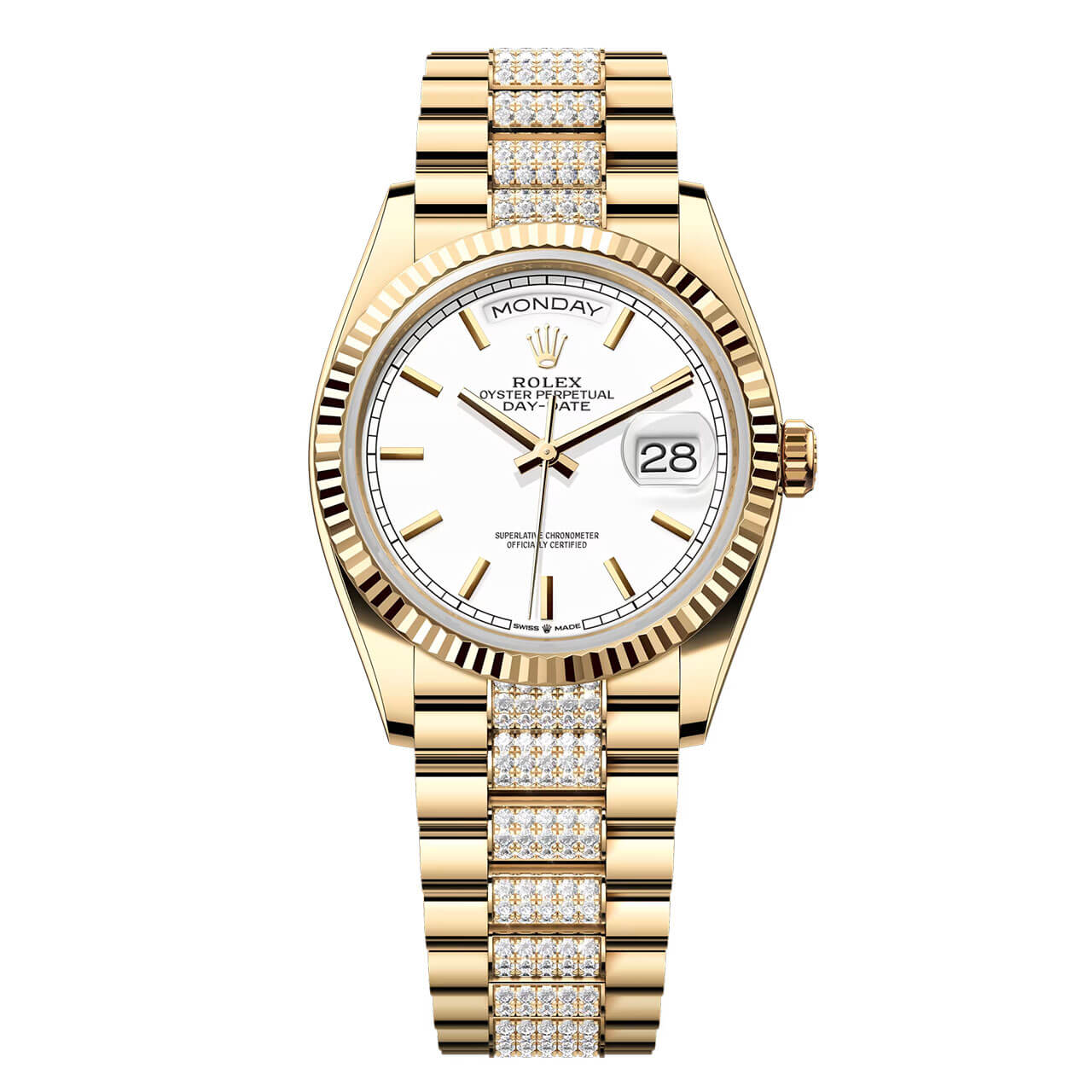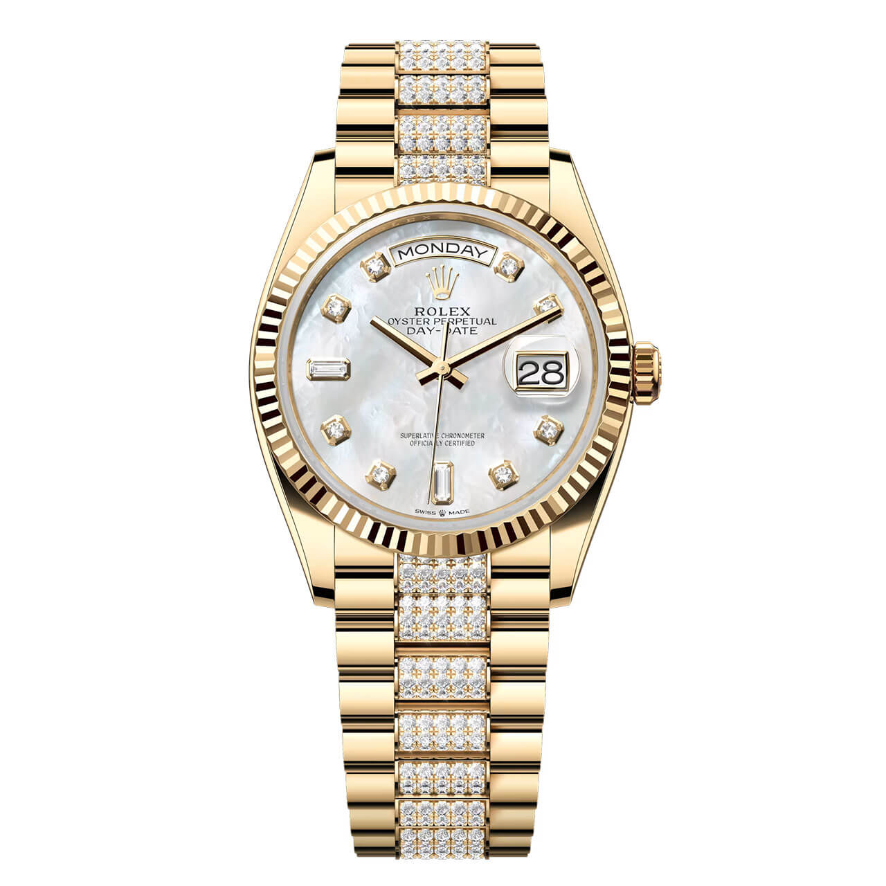 Introduced in 1956, the Rolex Day-Date was the very first self-winding wristwatch to feature not only a date window but also a window for the day of the week, spelt out in full and offered today in 26 languages. The Day-Date is the only model that Rolex has never offered for sale in steel – only gold and platinum, hence it was associated with power and success and found its way onto the wrists of many American presidents. Consequently, Rolex dubbed the Day-Date’s bracelet the President, though this nickname has spilled over to cover the whole watch in collector conversations.