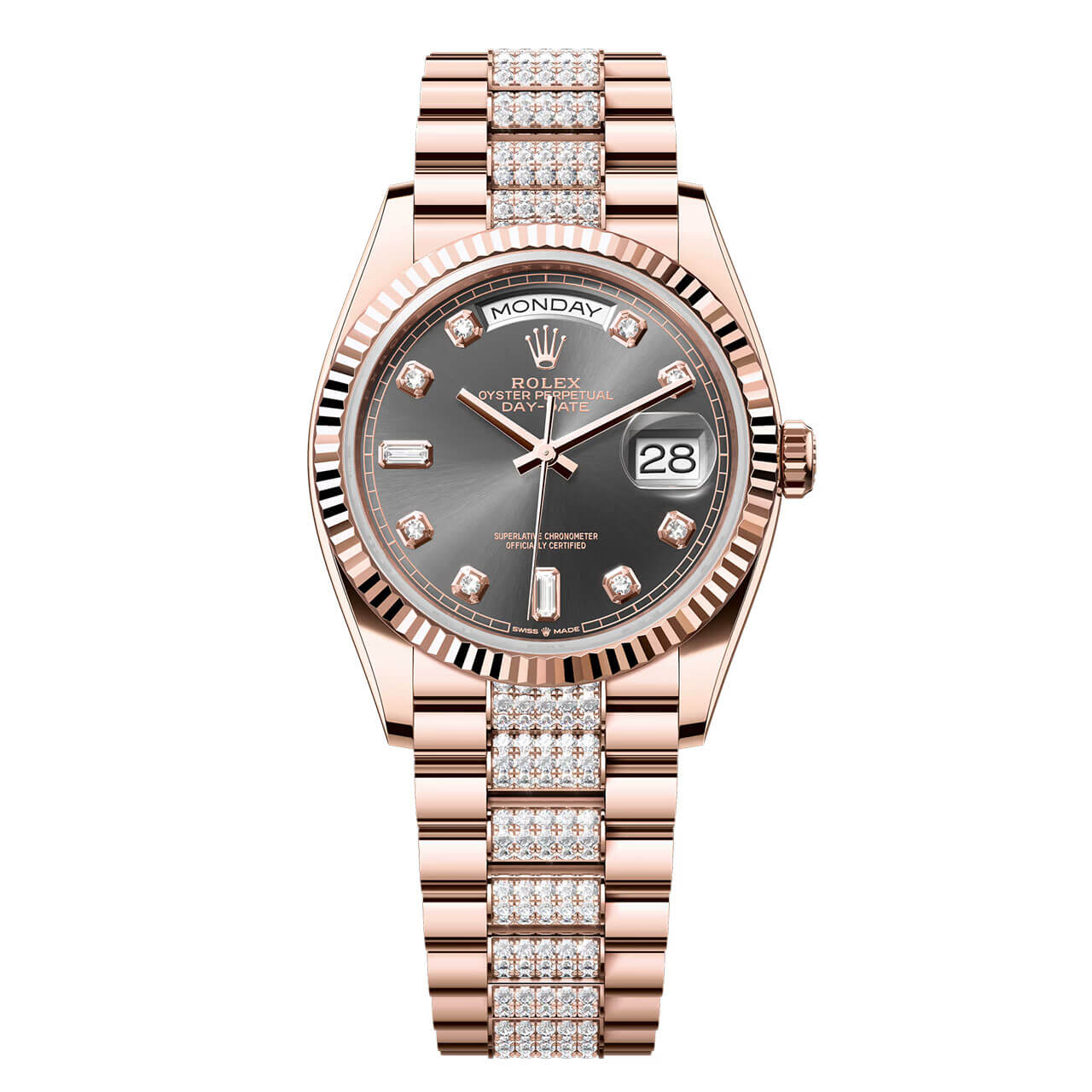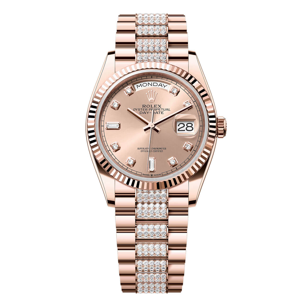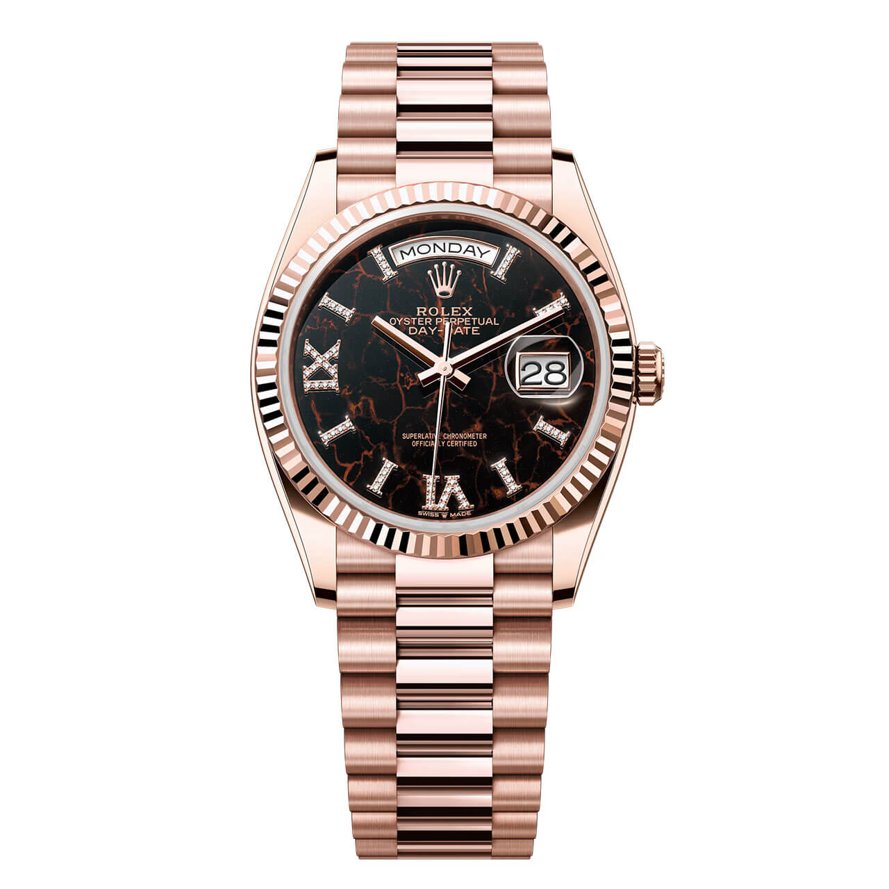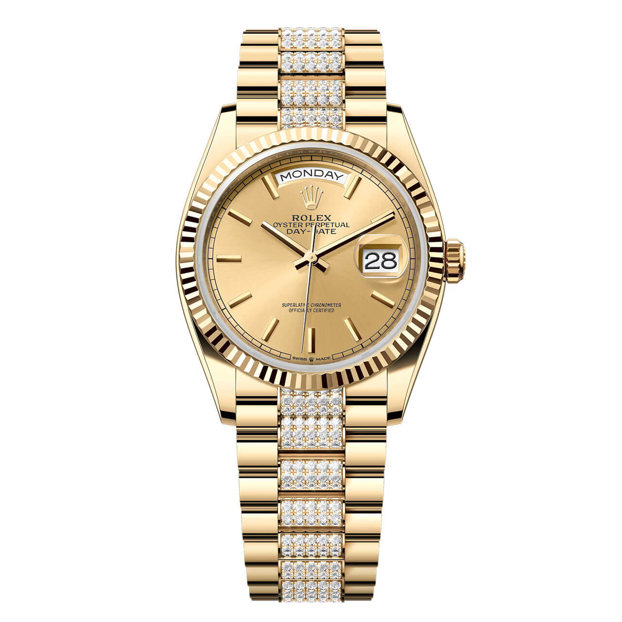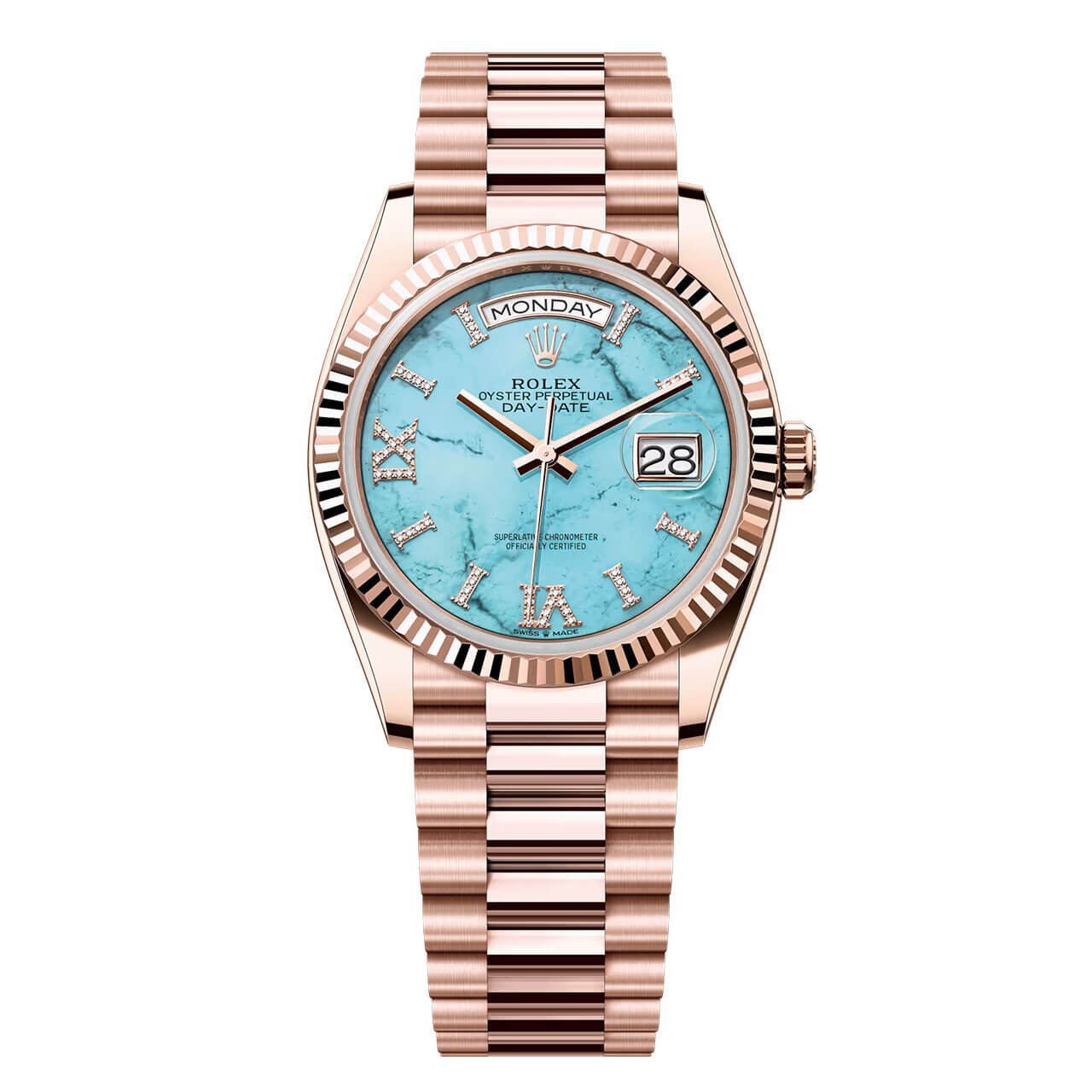 Introduced in 1956, the Rolex Day-Date was the very first self-winding wristwatch to feature not only a date window but also a window for the day of the week, spelt out in full and offered today in 26 languages. The Day-Date is the only model that Rolex has never offered for sale in steel – only gold and platinum, hence it was associated with power and success and found its way onto the wrists of many American presidents. Consequently, Rolex dubbed the Day-Date’s bracelet the President, though this nickname has spilled over to cover the whole watch in collector conversations.