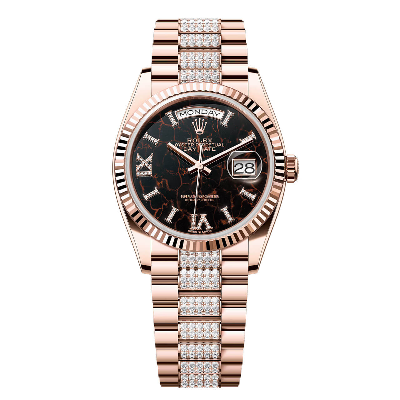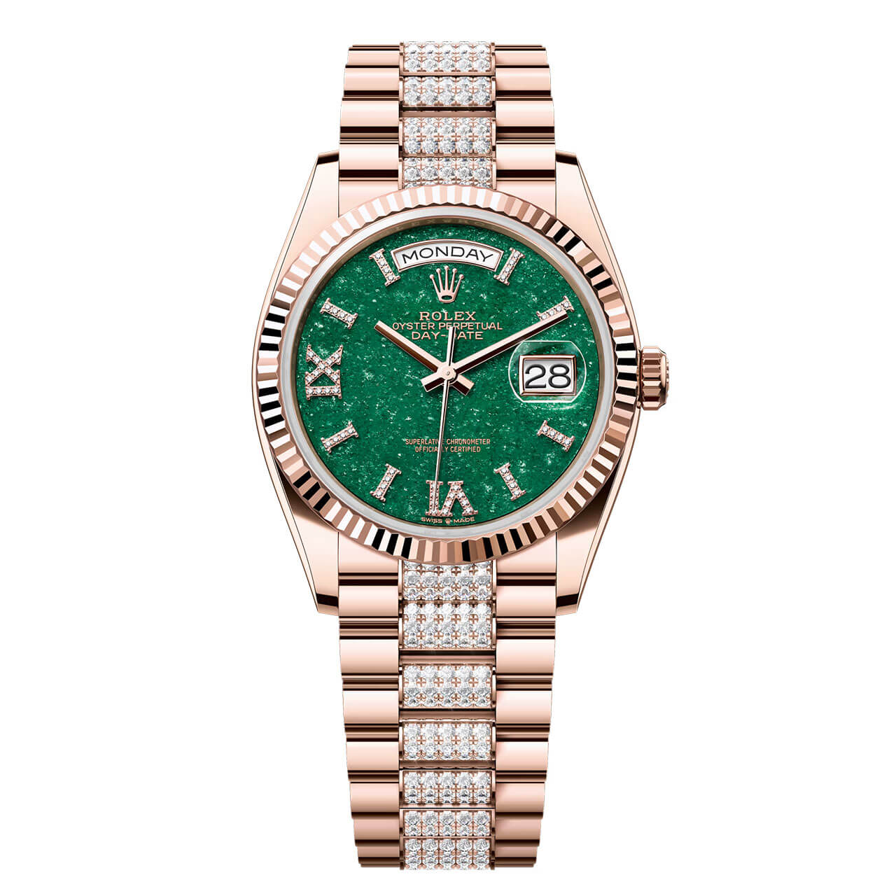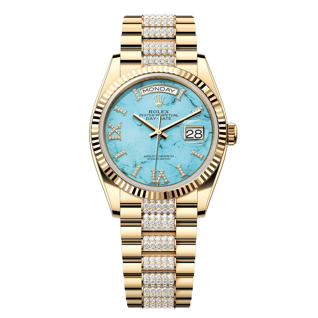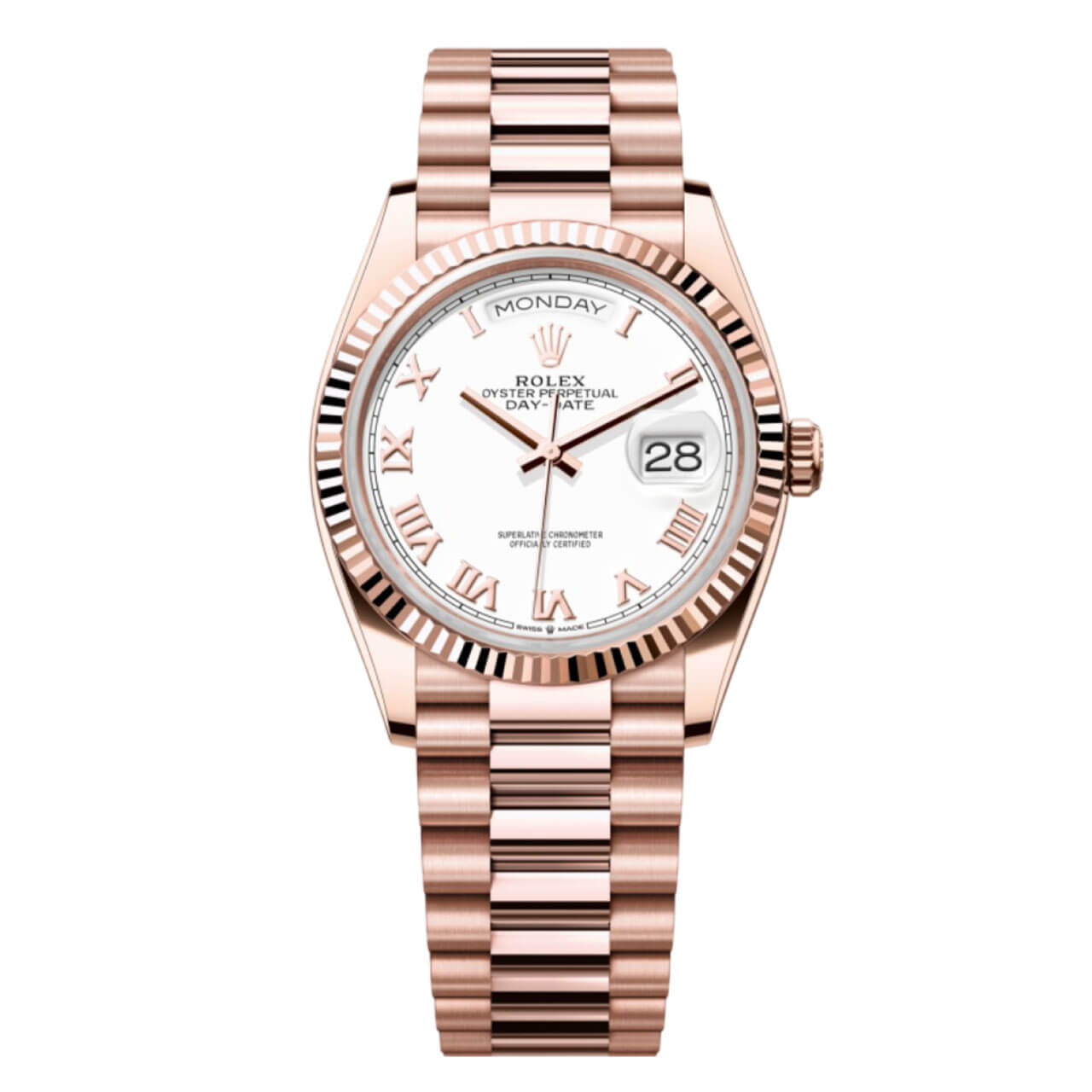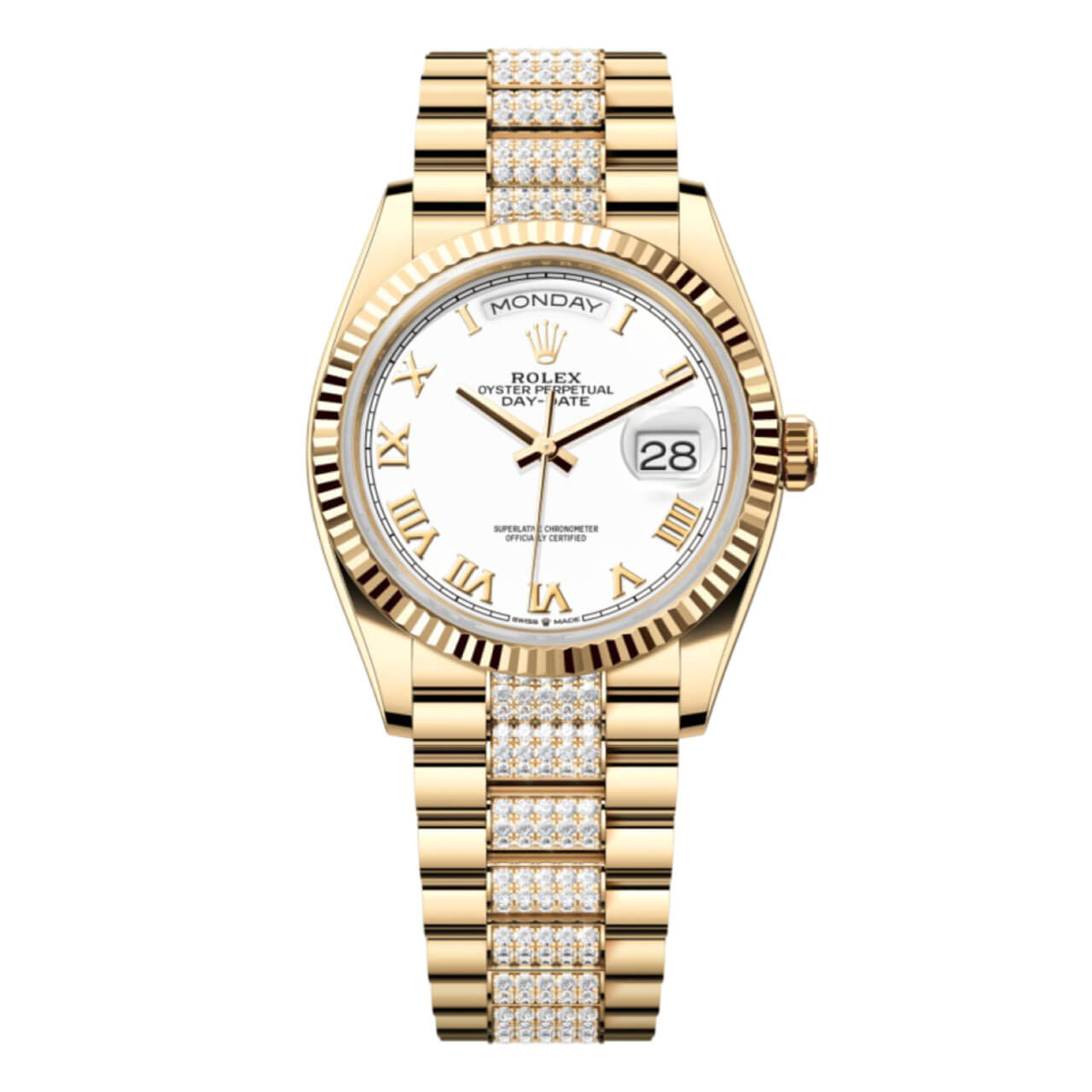 Introduced in 1956, the Rolex Day-Date was the very first self-winding wristwatch to feature not only a date window but also a window for the day of the week, spelt out in full and offered today in 26 languages. The Day-Date is the only model that Rolex has never offered for sale in steel – only gold and platinum, hence it was associated with power and success and found its way onto the wrists of many American presidents. Consequently, Rolex dubbed the Day-Date’s bracelet the President, though this nickname has spilled over to cover the whole watch in collector conversations.